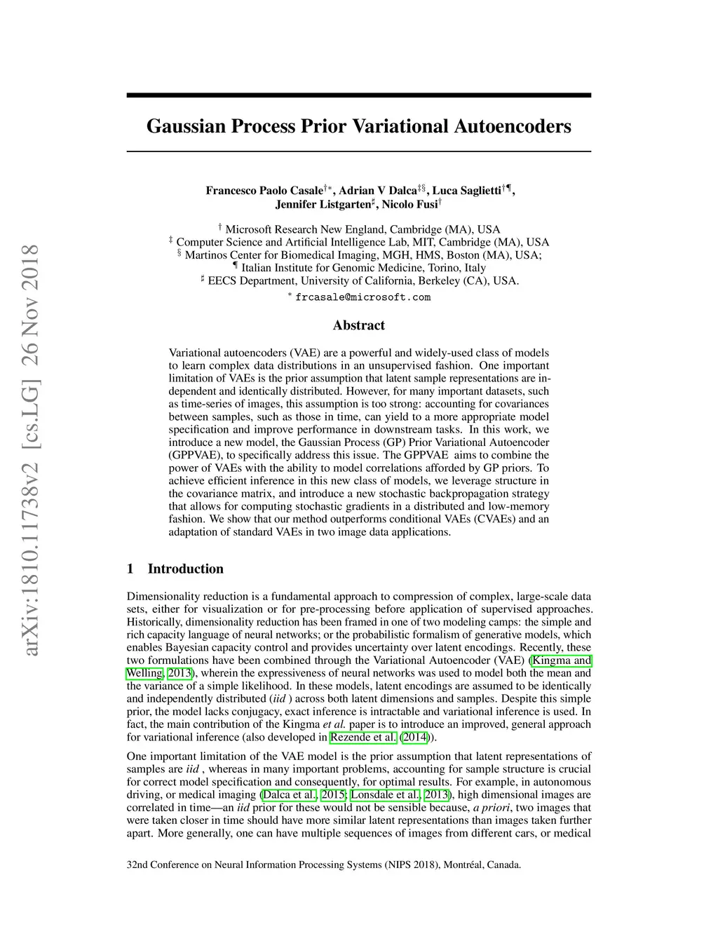 Gaussian Process Prior Variational Autoencoders