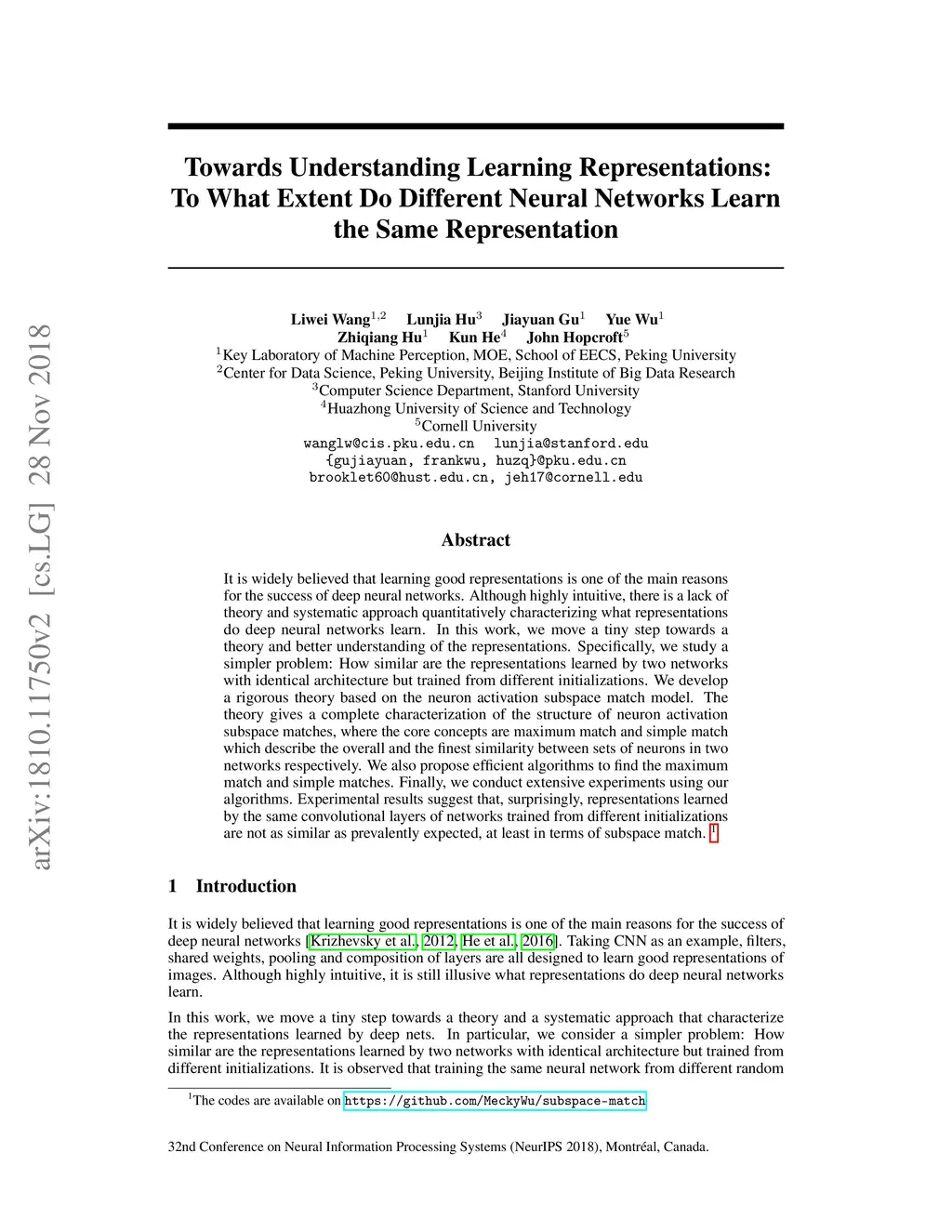 Different Neural Networks Learn the Same Representation