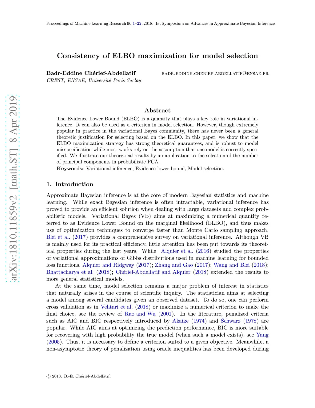 Consistency of ELBO maximization for model selection