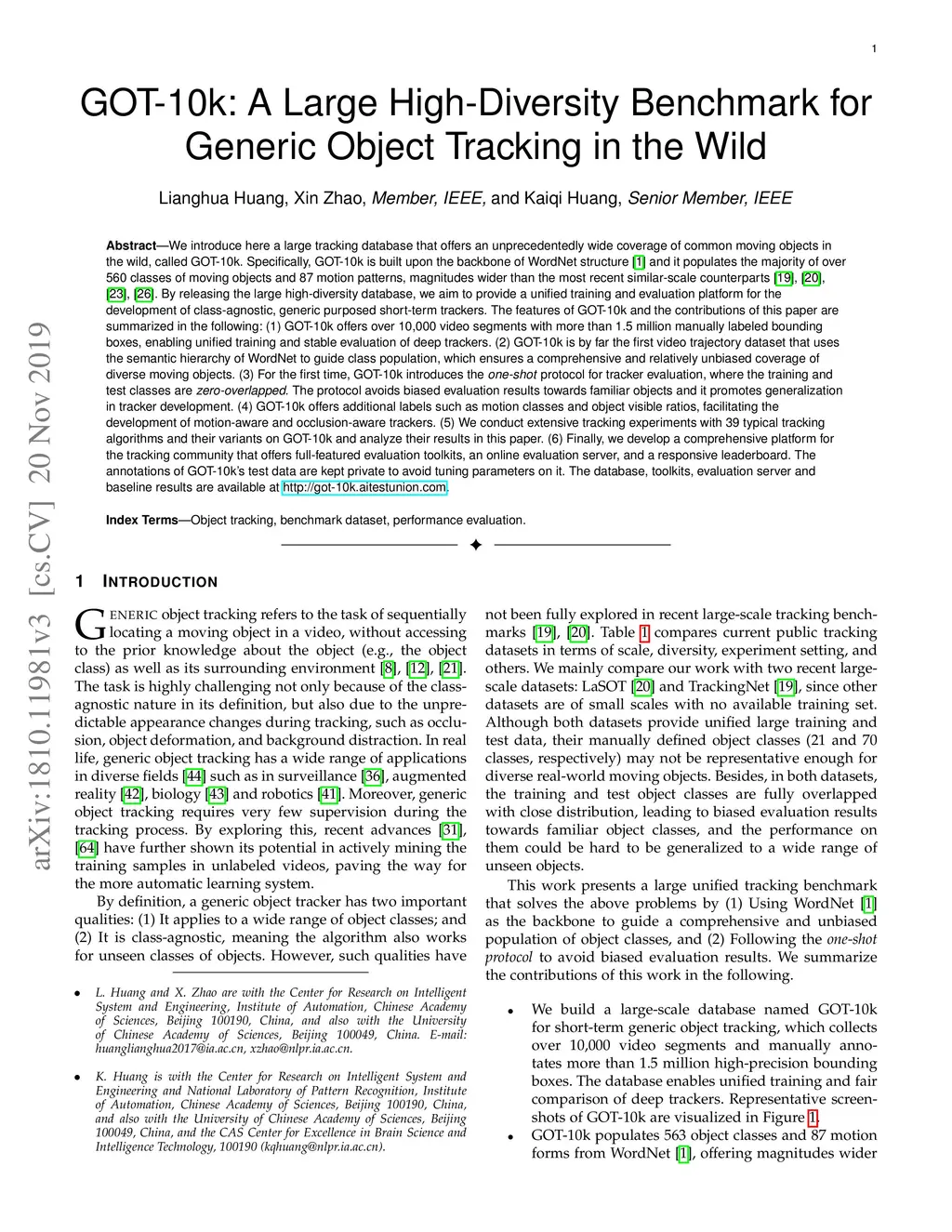 GOT-10k: A Large High-Diversity Benchmark for Generic Object Tracking in