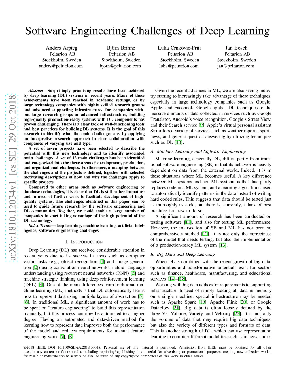 Software Engineering Challenges of Deep Learning