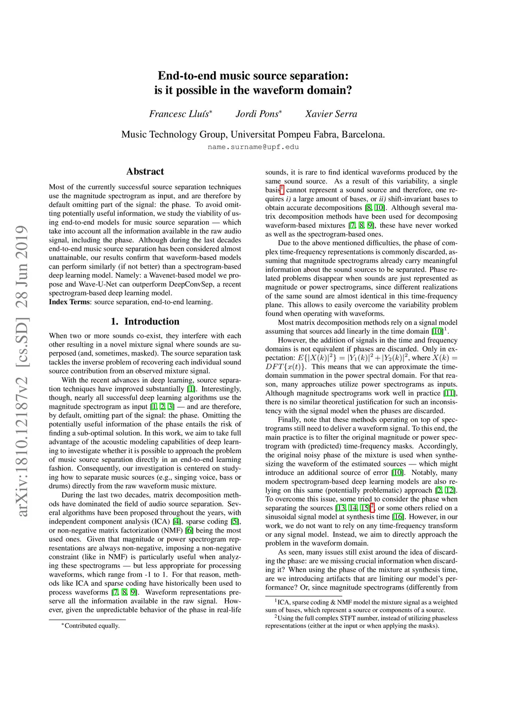 End-to-end music source separation: is it possible in the waveform