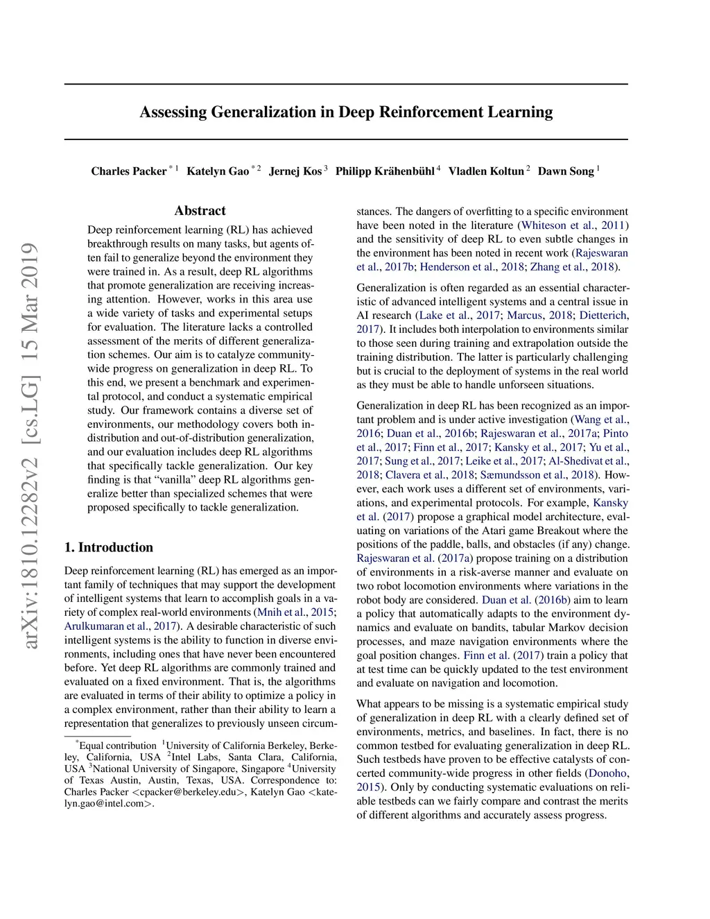 Assessing Generalization in Deep Reinforcement Learning