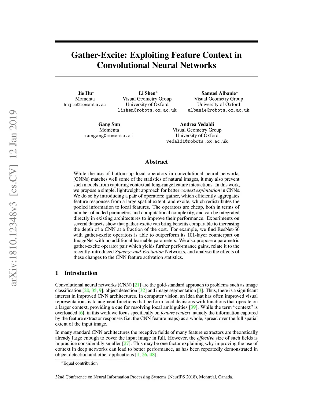 Gather-Excite: Exploiting Feature Context in Convolutional Neural