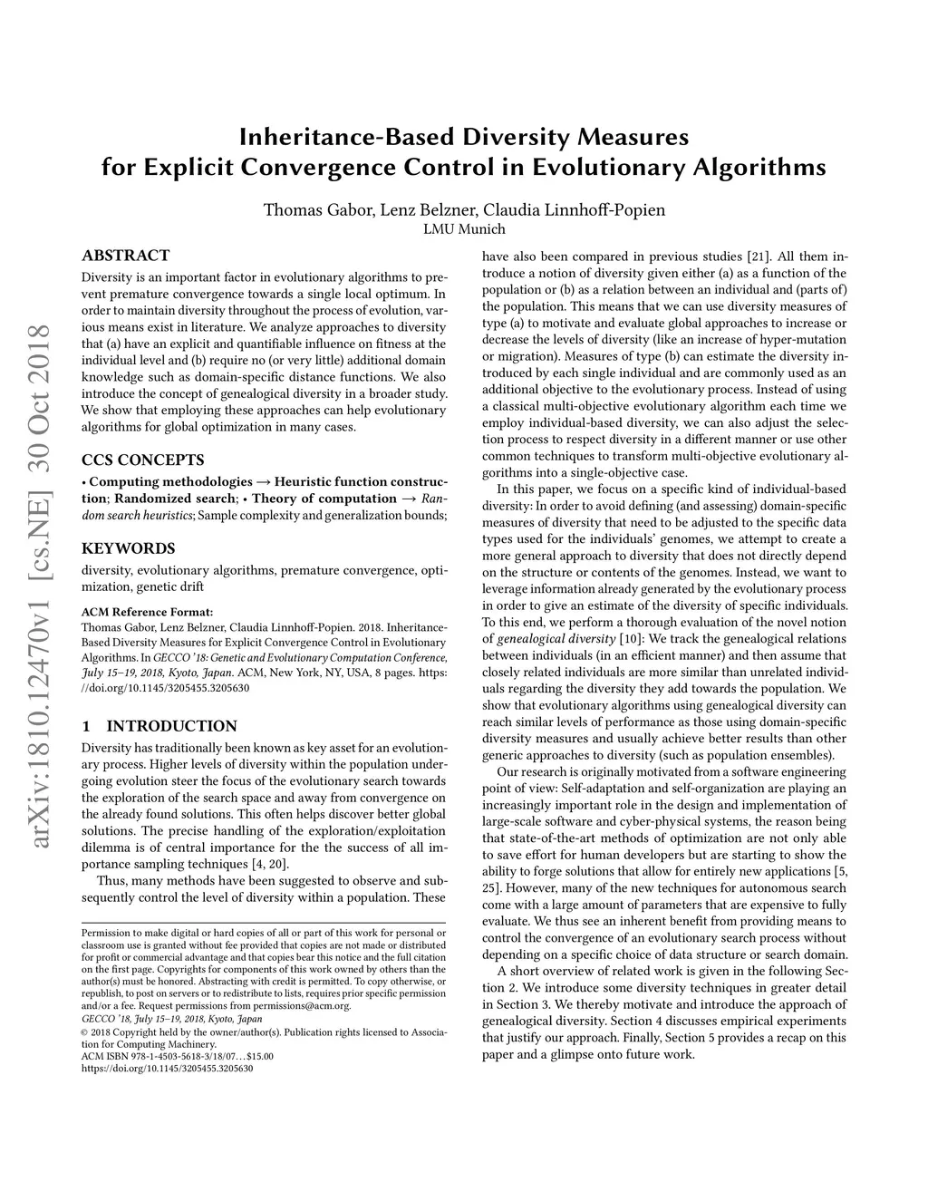 Inheritance-Based Diversity Measures for Explicit Convergence Control in