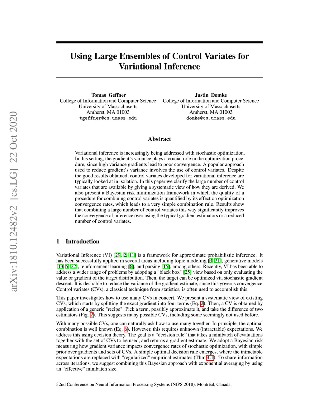 Using Large Ensembles of Control Variates for Variational Inference
