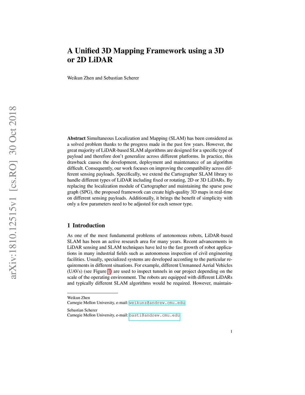 A Unified 3D Mapping Framework using a 3D or 2D LiDAR