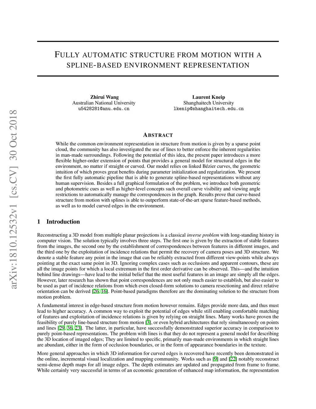 Fully automatic structure from motion with a spline-based environment