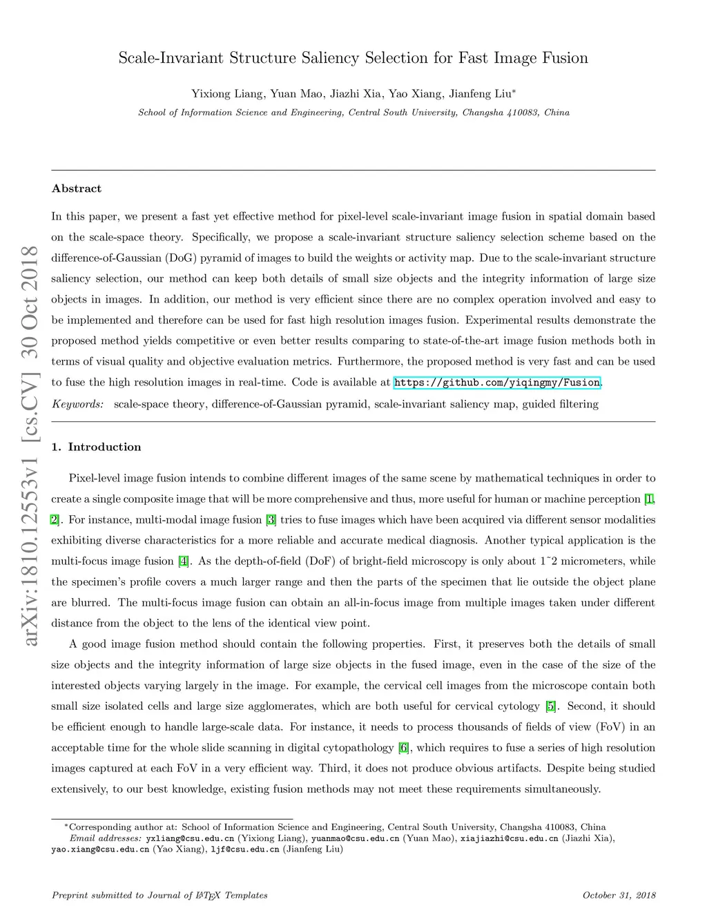 Scale-Invariant Structure Saliency Selection for Fast Image Fusion