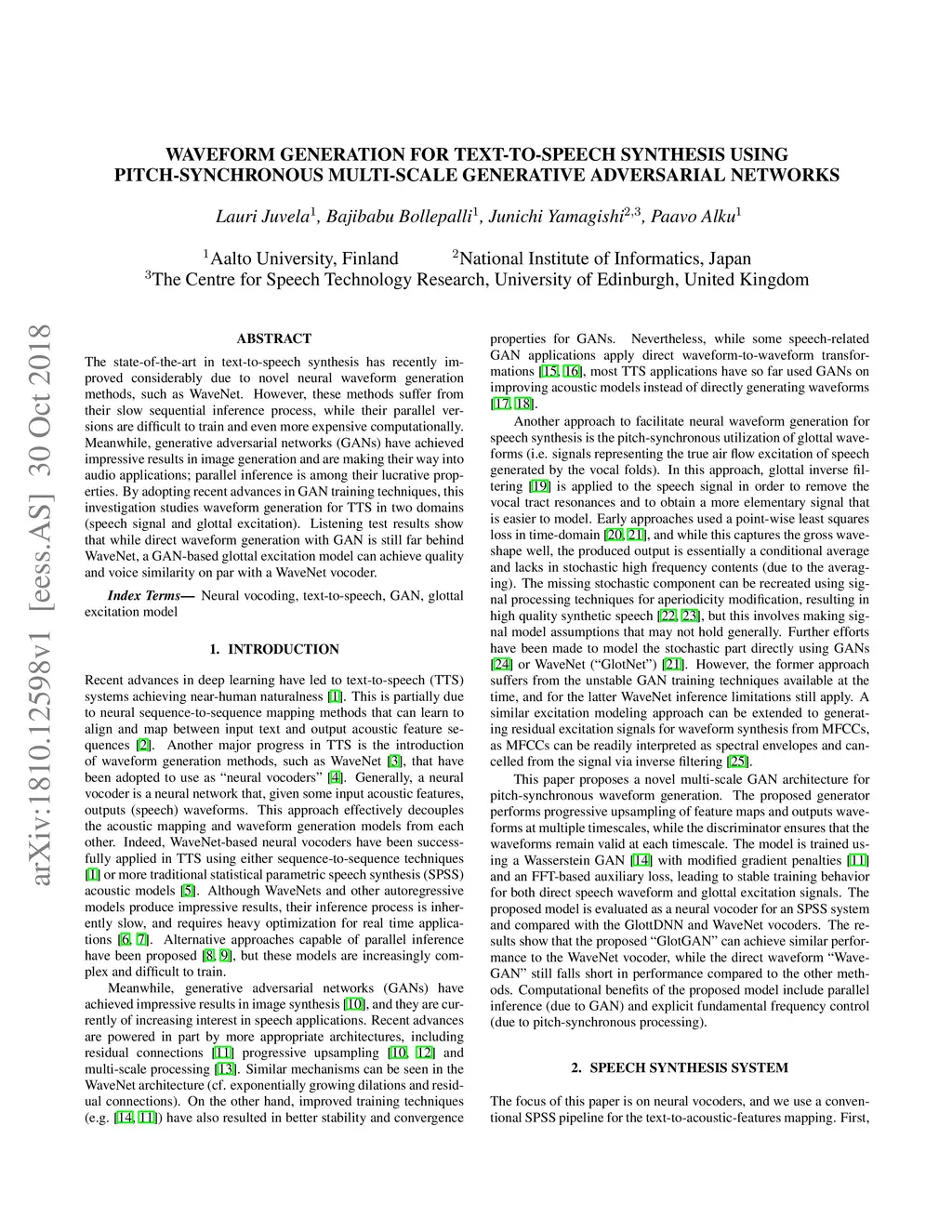 Waveform generation for text-to-speech synthesis using pitch-synchronous