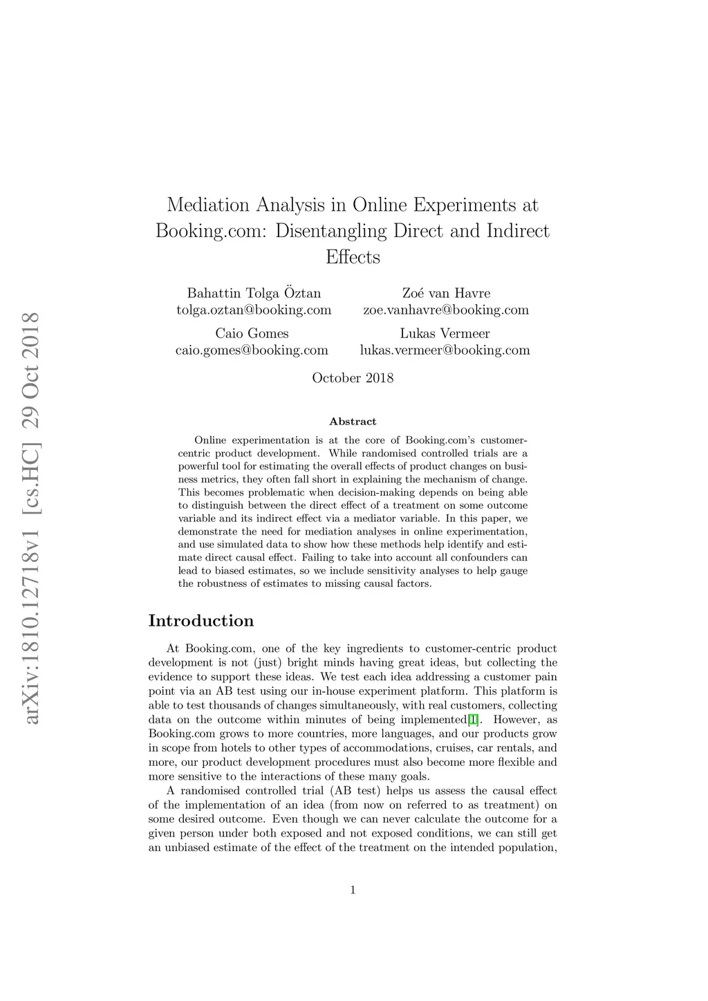 Online experimentation is at the core of Booking.com's customer-centric product development. While randomised controlled trials are a powerful tool for estimating the overall effects of product changes on business metrics, they often fall short in explaining the mechanism of change. This becomes problematic when decision-making depends on being able to distinguish between the direct effect of a treatment on some outcome variable and its indirect effect via a mediator variable. In this paper, we demonstrate the need for mediation analyses in online experimentation, and use simulated data to show how these methods help identify and estimate direct causal effect. Failing to take into account all confounders can lead to biased estimates, so we include sensitivity analyses to help gauge the robustness of estimates to missing causal factors.