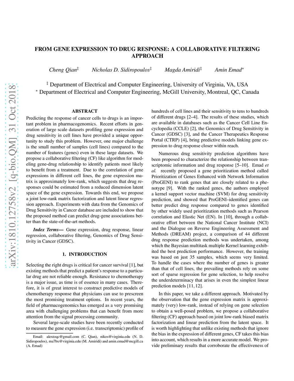 From Gene Expression to Drug Response: A Collaborative Filtering