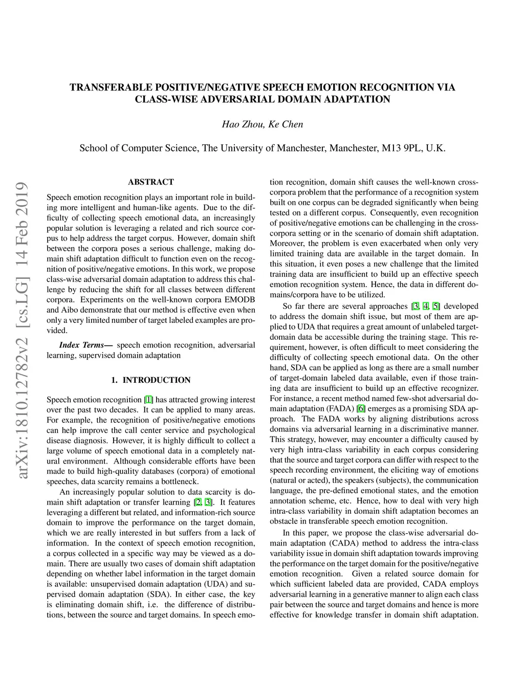 Transferable Positive/Negative Speech Emotion Recognition via Class-wise