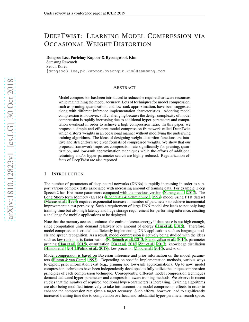 DeepTwist: Learning Model Compression via Occasional Weight Distortion