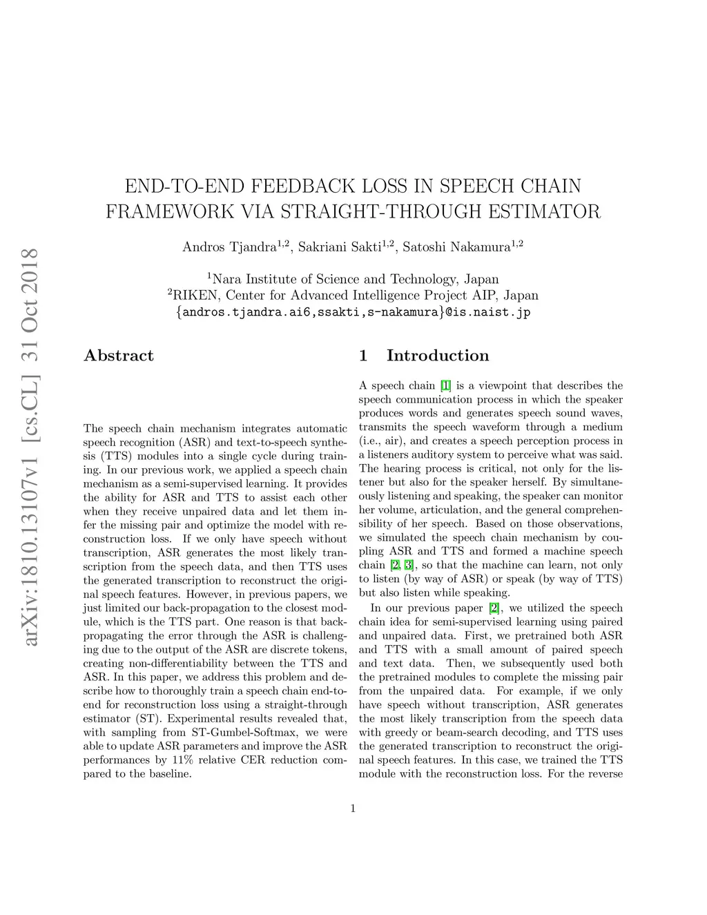 End-to-End Feedback Loss in Speech Chain Framework via Straight-Through