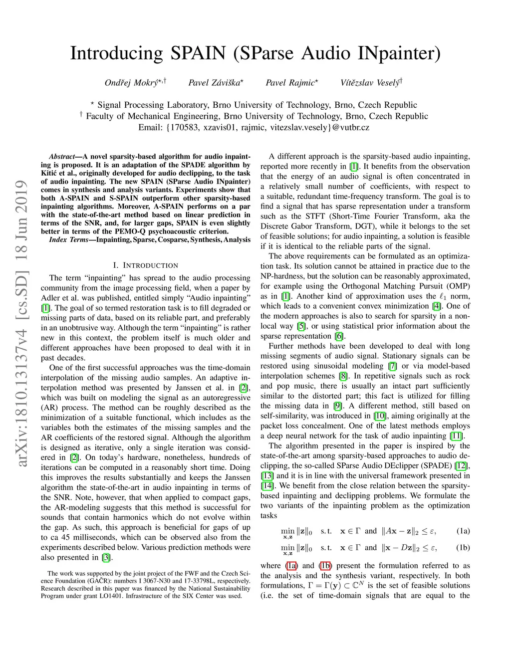 A novel sparsity-based algorithm for audio inpainting is proposed. It is an adaptation of the SPADE algorithm by Kiti\'c et al., originally developed for audio declipping, to the task of audio inpainting. The new SPAIN (SParse Audio INpainter) comes in synthesis and analysis variants. Experiments show that both A-SPAIN and S-SPAIN outperform other sparsity-based inpainting algorithms. Moreover, A-SPAIN performs on a par with the state-of-the-art method based on linear prediction in terms of the SNR, and, for larger gaps, SPAIN is even slightly better in terms of the PEMO-Q psychoacoustic criterion.