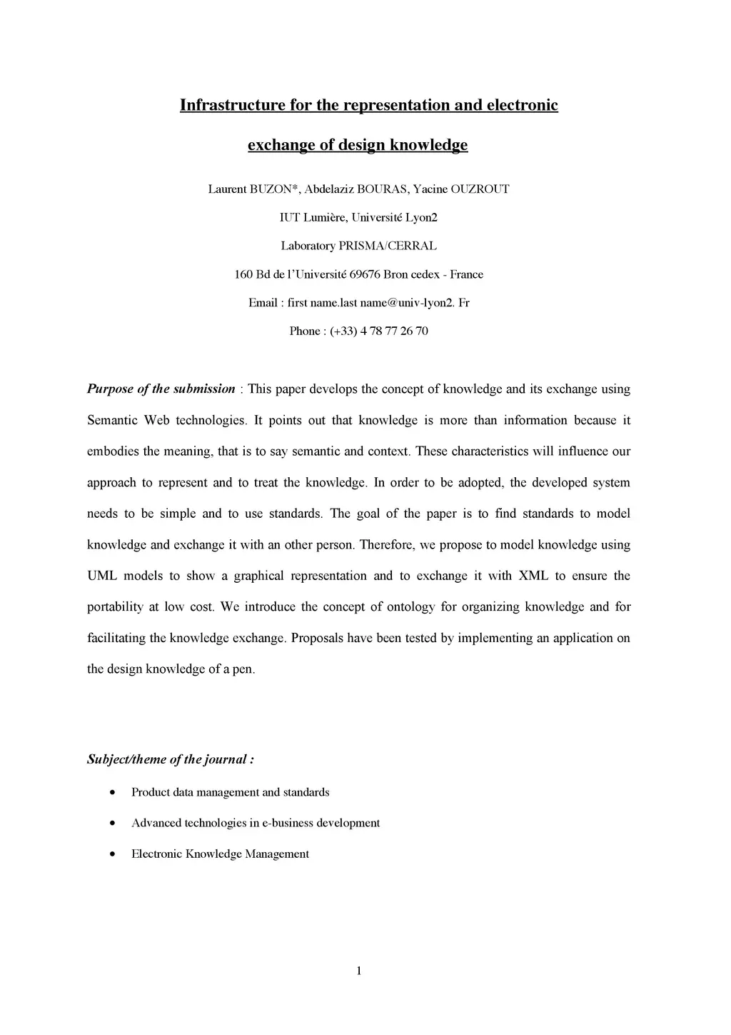 This paper develops the concept of knowledge and its exchange using Semantic Web technologies. It points out that knowledge is more than information because it embodies the meaning, that is to say semantic and context. These characteristics will influence our approach to represent and to treat the knowledge. In order to be adopted, the developed system needs to be simple and to use standards. The goal of the paper is to find standards to model knowledge and exchange it with an other person. Therefore, we propose to model knowledge using UML models to show a graphical representation and to exchange it with XML to ensure the portability at low cost. We introduce the concept of ontology for organizing knowledge and for facilitating the knowledge exchange. Proposals have been tested by implementing an application on the design knowledge of a pen.