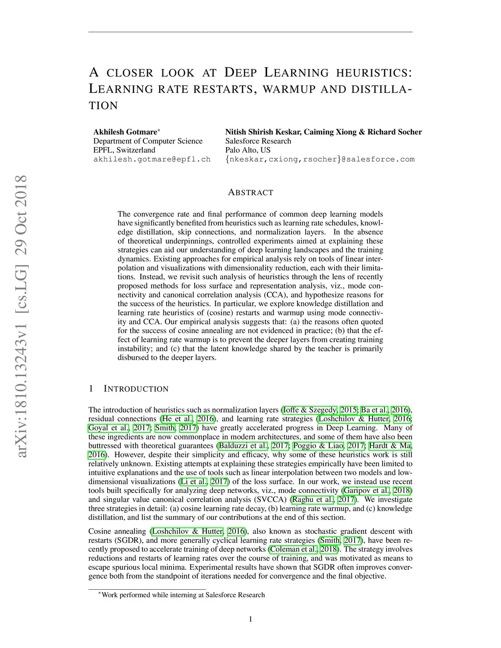 A Closer Look at Deep Learning Heuristics: Learning rate restarts,