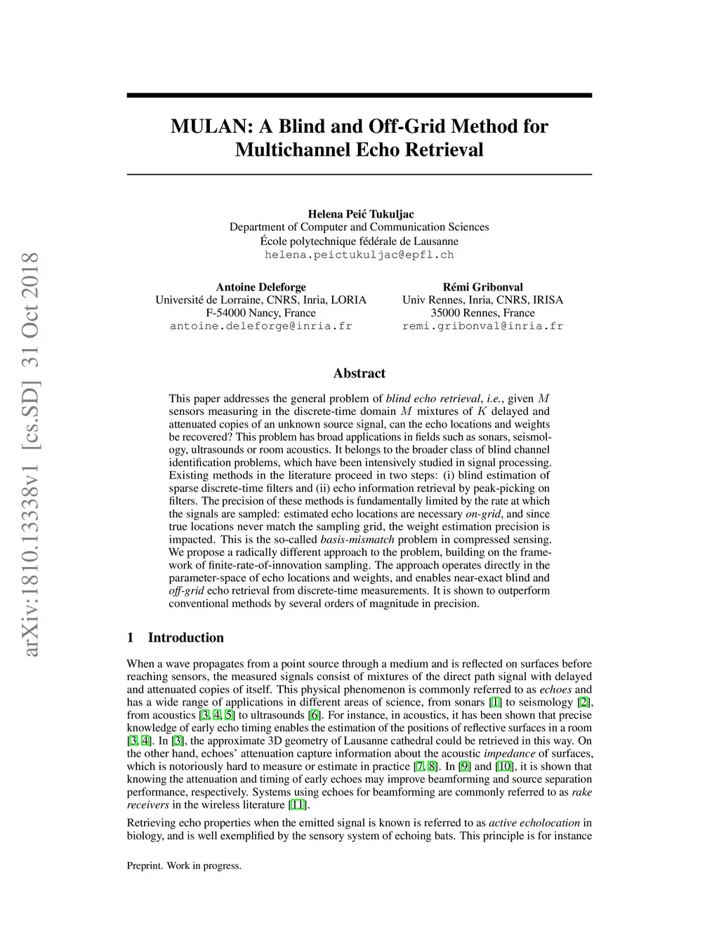 MULAN: A Blind and Off-Grid Method for Multichannel Echo Retrieval