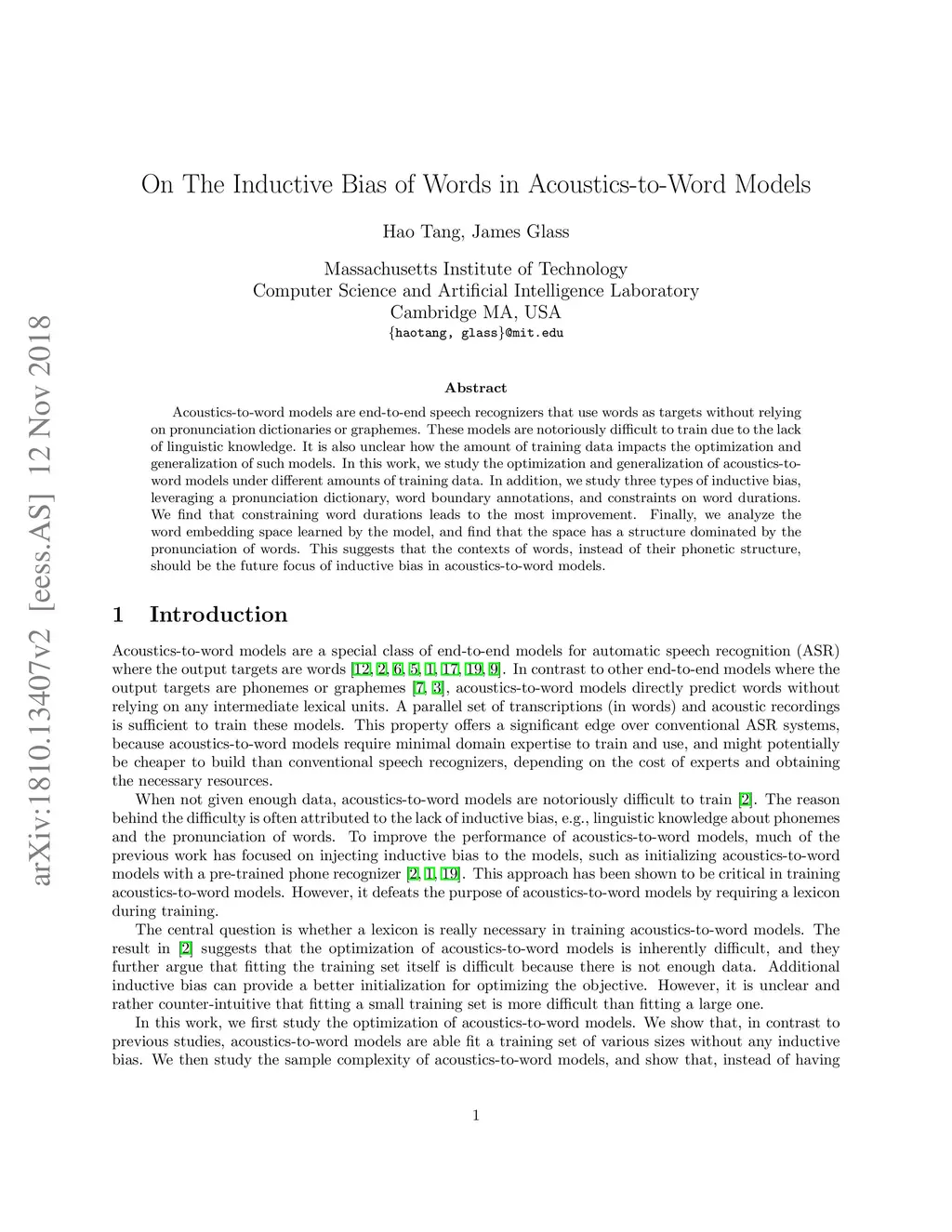 On The Inductive Bias of Words in Acoustics-to-Word Models