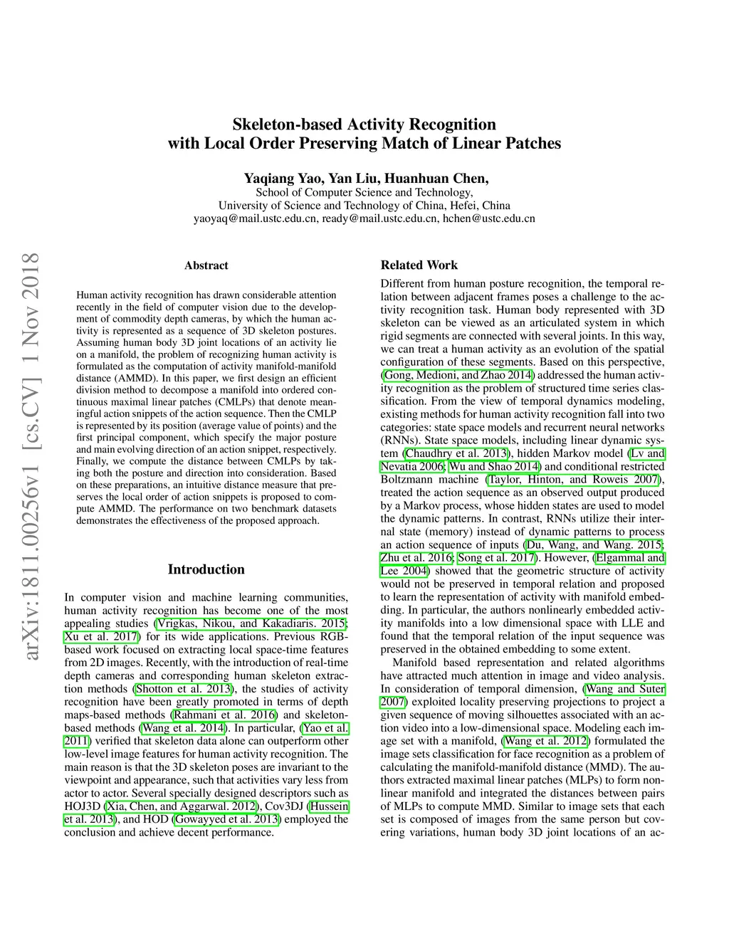 Skeleton-based Activity Recognition with Local Order Preserving Match of