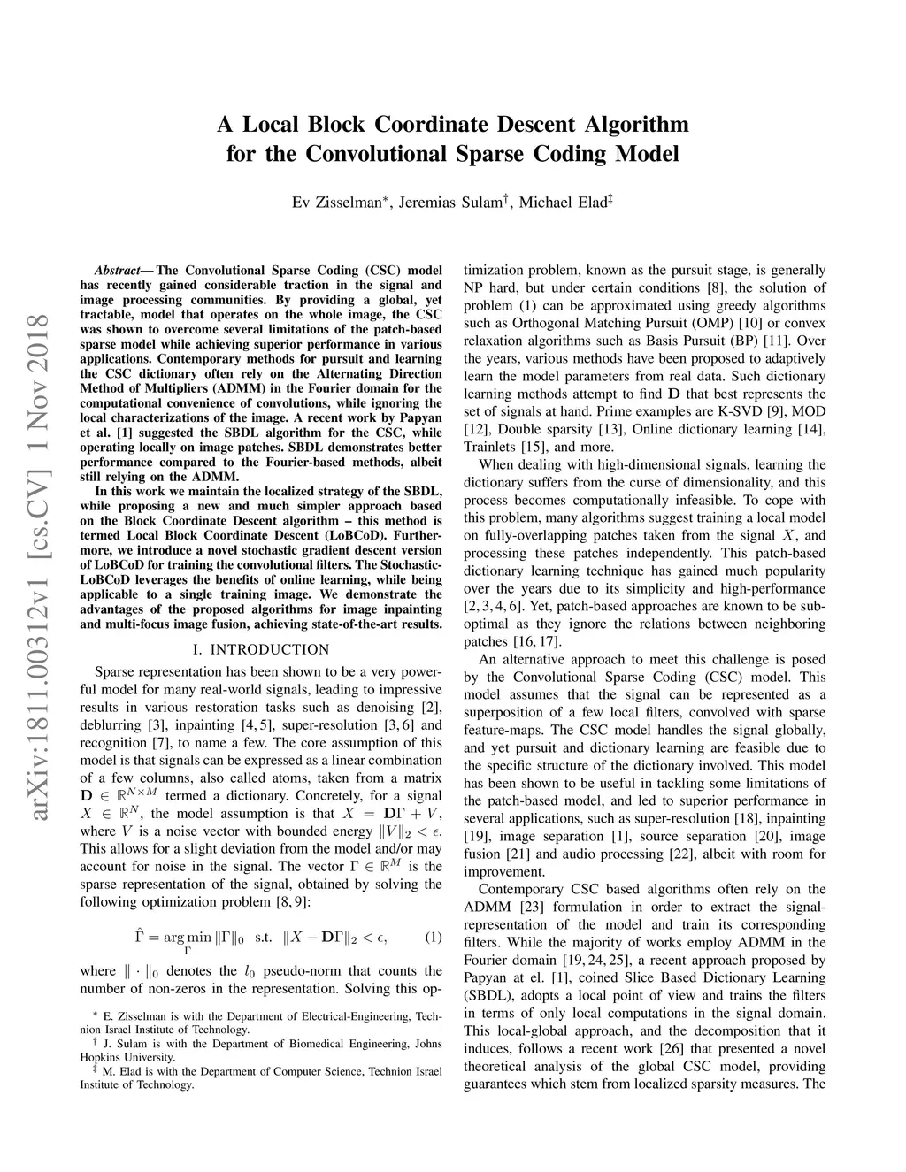 The Convolutional Sparse Coding (CSC) model has recently gained considerable traction in the signal and image processing communities. By providing a global, yet tractable, model that operates on the whole image, the CSC was shown to overcome several limitations of the patch-based sparse model while achieving superior performance in various applications. Contemporary methods for pursuit and learning the CSC dictionary often rely on the Alternating Direction Method of Multipliers (ADMM) in the Fourier domain for the computational convenience of convolutions, while ignoring the local characterizations of the image. A recent work by Papyan et al. suggested the SBDL algorithm for the CSC, while operating locally on image patches. SBDL demonstrates better performance compared to the Fourier-based methods, albeit still relying on the ADMM. In this work we maintain the localized strategy of the SBDL, while proposing a new and much simpler approach based on the Block Coordinate Descent algorithm - this method is termed Local Block Coordinate Descent (LoBCoD). Furthermore, we introduce a novel stochastic gradient descent version of LoBCoD for training the convolutional filters. The Stochastic-LoBCoD leverages the benefits of online learning, while being applicable to a single training image. We demonstrate the advantages of the proposed algorithms for image inpainting and multi-focus image fusion, achieving state-of-the-art results.