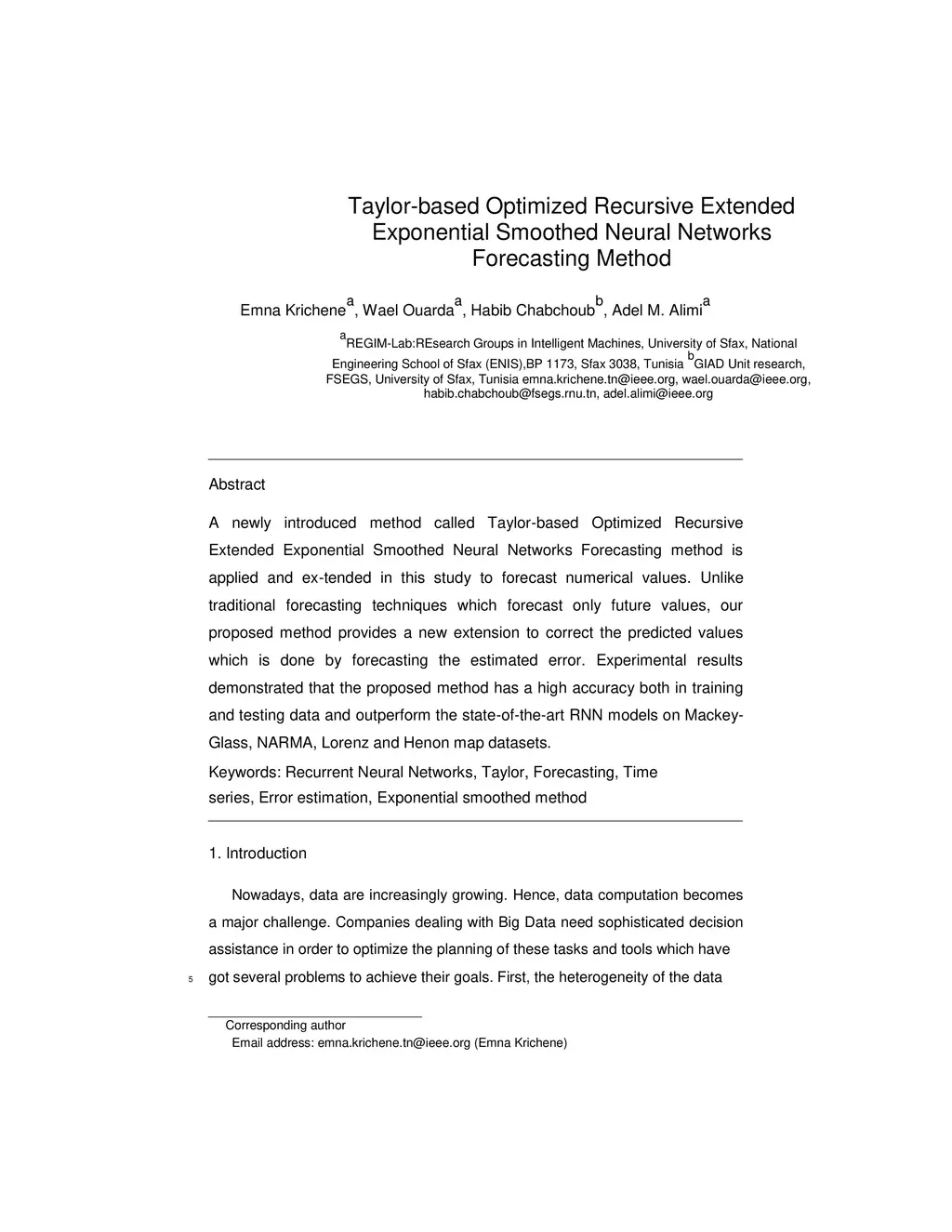 A newly introduced method called Taylor-based Optimized Recursive Extended Exponential Smoothed Neural Networks Forecasting method is applied and extended in this study to forecast numerical values. Unlike traditional forecasting techniques which forecast only future values, our proposed method provides a new extension to correct the predicted values which is done by forecasting the estimated error. Experimental results demonstrated that the proposed method has a high accuracy both in training and testing data and outperform the state-of-the-art RNN models on Mackey-Glass, NARMA, Lorenz and Henon map datasets.