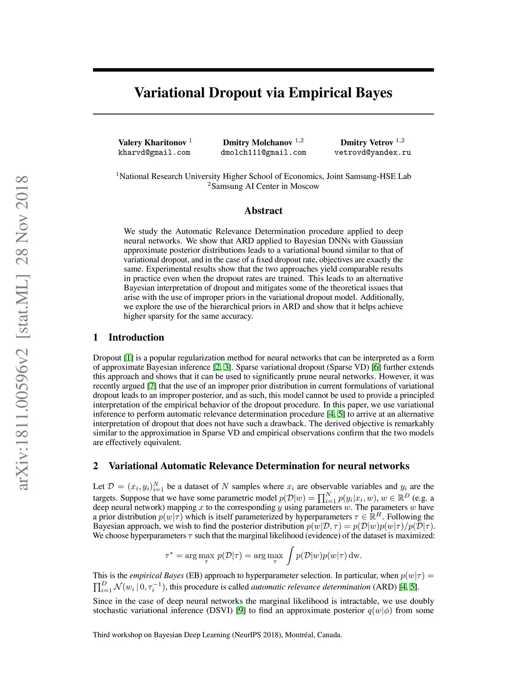 Variational Dropout via Empirical Bayes