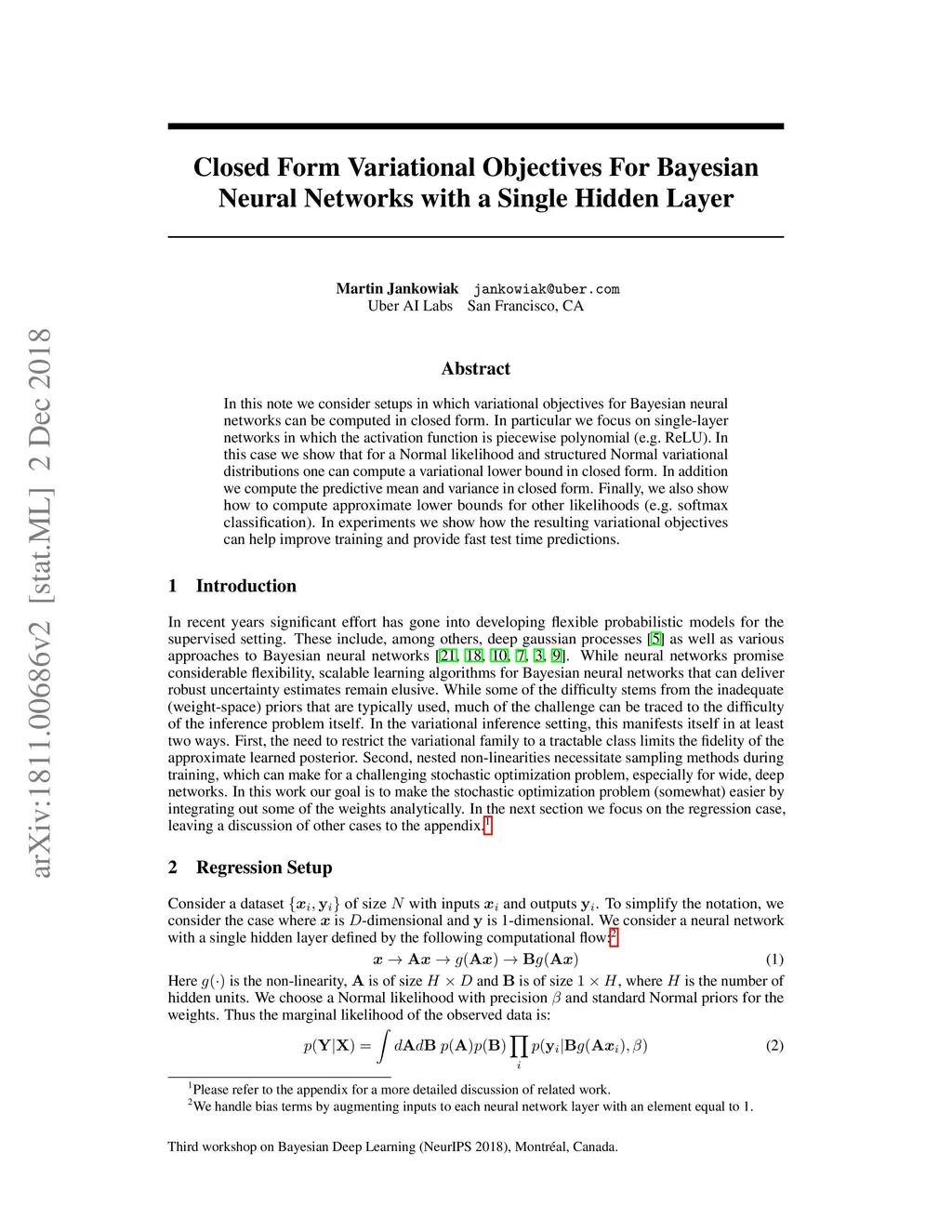 Closed Form Variational Objectives For Bayesian Neural Networks with a