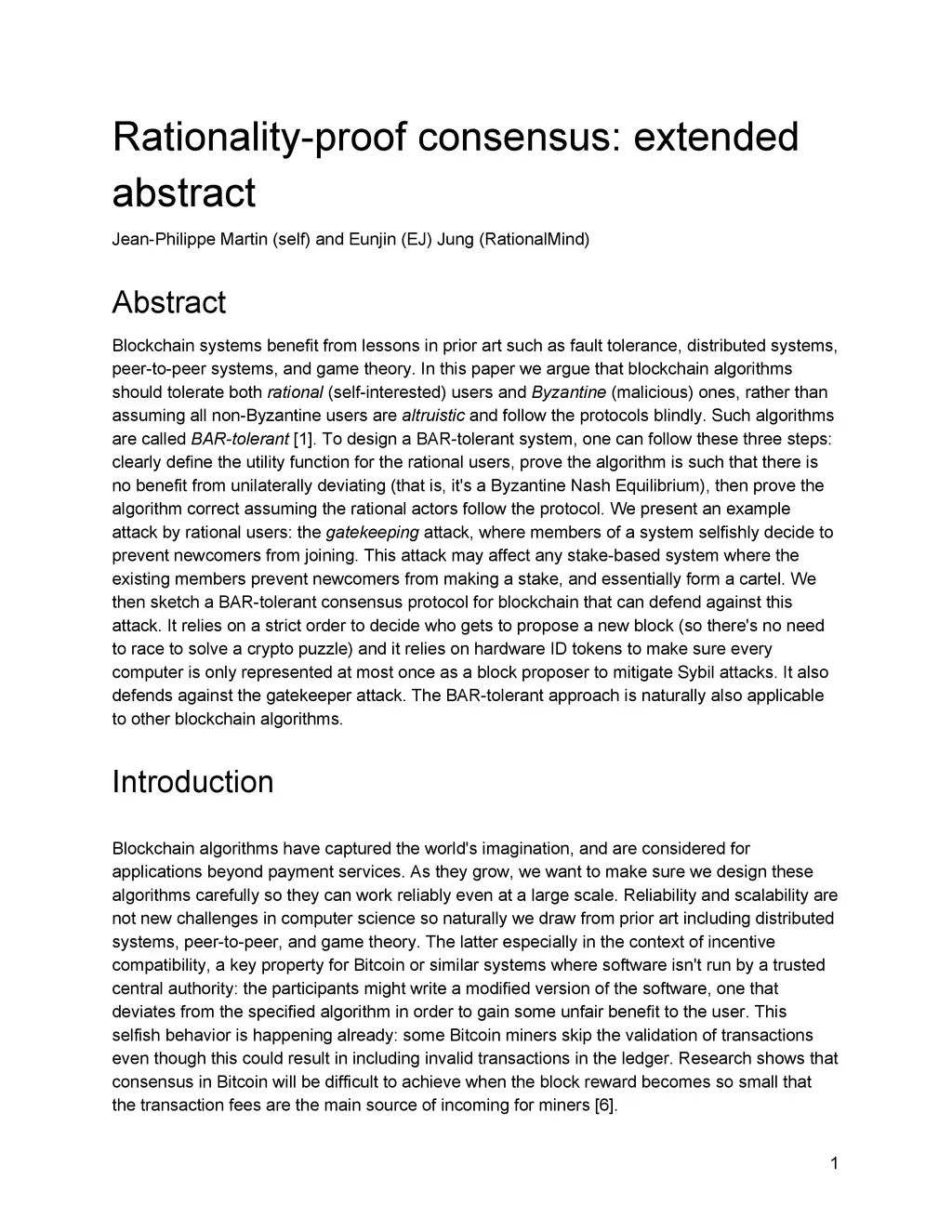 Blockchain systems benefit from lessons in prior art such as fault tolerance, distributed systems, peer-to-peer systems, and game theory. In this paper we argue that blockchain algorithms should tolerate both rational (self-interested) users and Byzantine (malicious) ones, rather than assuming all non-Byzantine users are altruistic and follow the protocols blindly. Such algorithms are called BAR-tolerant [1]. To design a BAR-tolerant system, one can follow these three steps: clearly define the utility function for the rational users, prove the algorithm is such that there is no benefit from unilaterally deviating (that is, it's a Byzantine Nash Equilibrium), then prove the algorithm correct assuming the rational actors follow the protocol. We present an example attack by rational users: the gatekeeping attack, where members of a system selfishly decide to prevent newcomers from joining. This attack may affect any stake-based system where the existing members prevent newcomers from making a stake, and essentially form a cartel. We then sketch a BAR-tolerant consensus protocol for blockchain that can defend against this attack. It relies on a strict order to decide who gets to propose a new block (so there's no need to race to solve a crypto puzzle) and it relies on hardware ID tokens to make sure every computer is only represented at most once as a block proposer to mitigate Sybil attacks. It also defends against the gatekeeper attack. The BAR-tolerant approach is naturally also applicable to other blockchain algorithms.