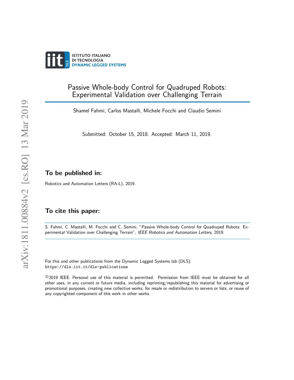 Passive Whole-body Control for Quadruped Robots: Experimental Validation