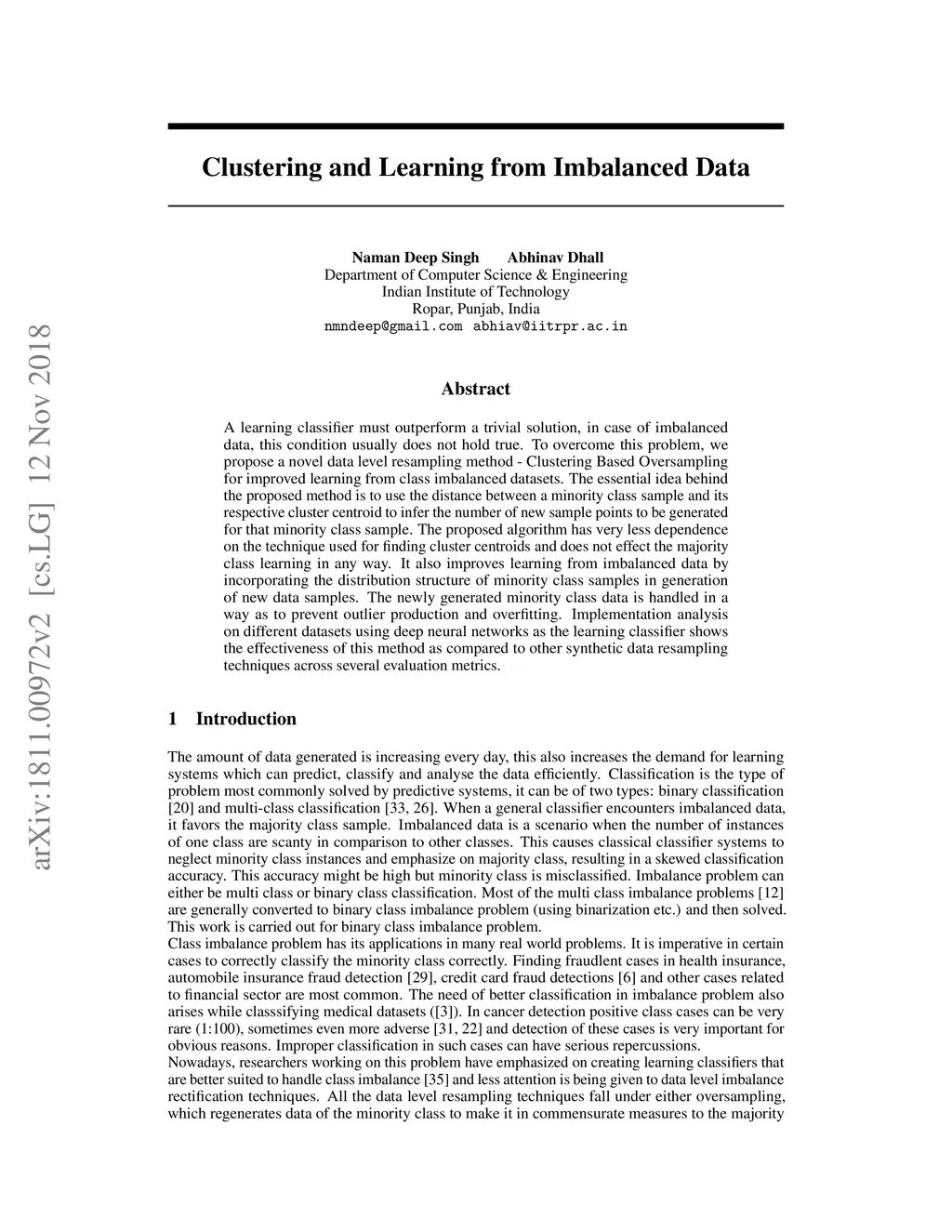 Clustering and Learning from Imbalanced Data