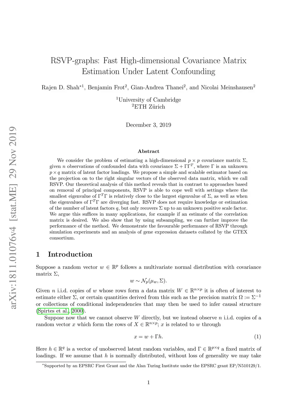 RSVP-graphs: Fast High-dimensional Covariance Matrix Estimation under