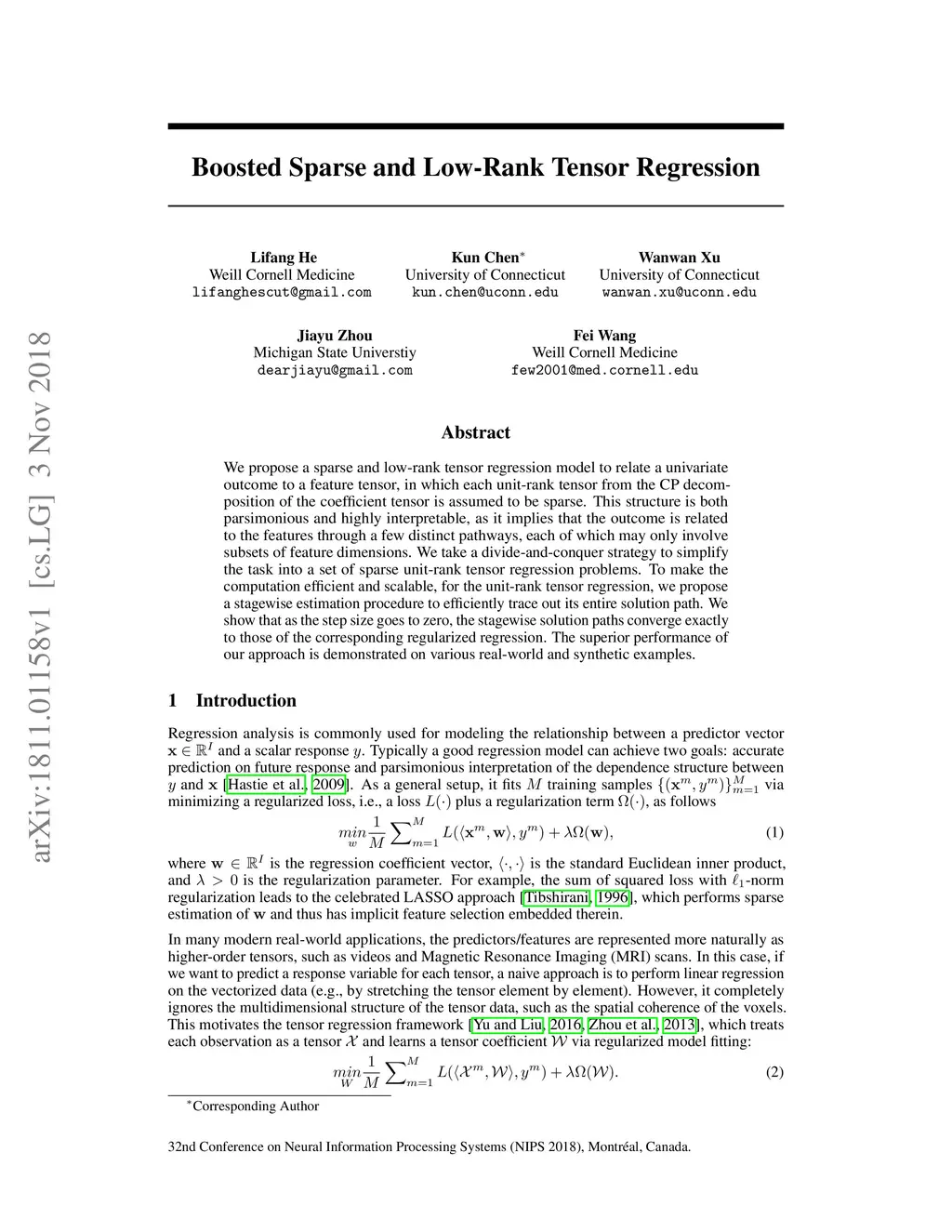 We propose a sparse and low-rank tensor regression model to relate a univariate outcome to a feature tensor, in which each unit-rank tensor from the CP decomposition of the coefficient tensor is assumed to be sparse. This structure is both parsimonious and highly interpretable, as it implies that the outcome is related to the features through a few distinct pathways, each of which may only involve subsets of feature dimensions. We take a divide-and-conquer strategy to simplify the task into a set of sparse unit-rank tensor regression problems. To make the computation efficient and scalable, for the unit-rank tensor regression, we propose a stagewise estimation procedure to efficiently trace out its entire solution path. We show that as the step size goes to zero, the stagewise solution paths converge exactly to those of the corresponding regularized regression. The superior performance of our approach is demonstrated on various real-world and synthetic examples.