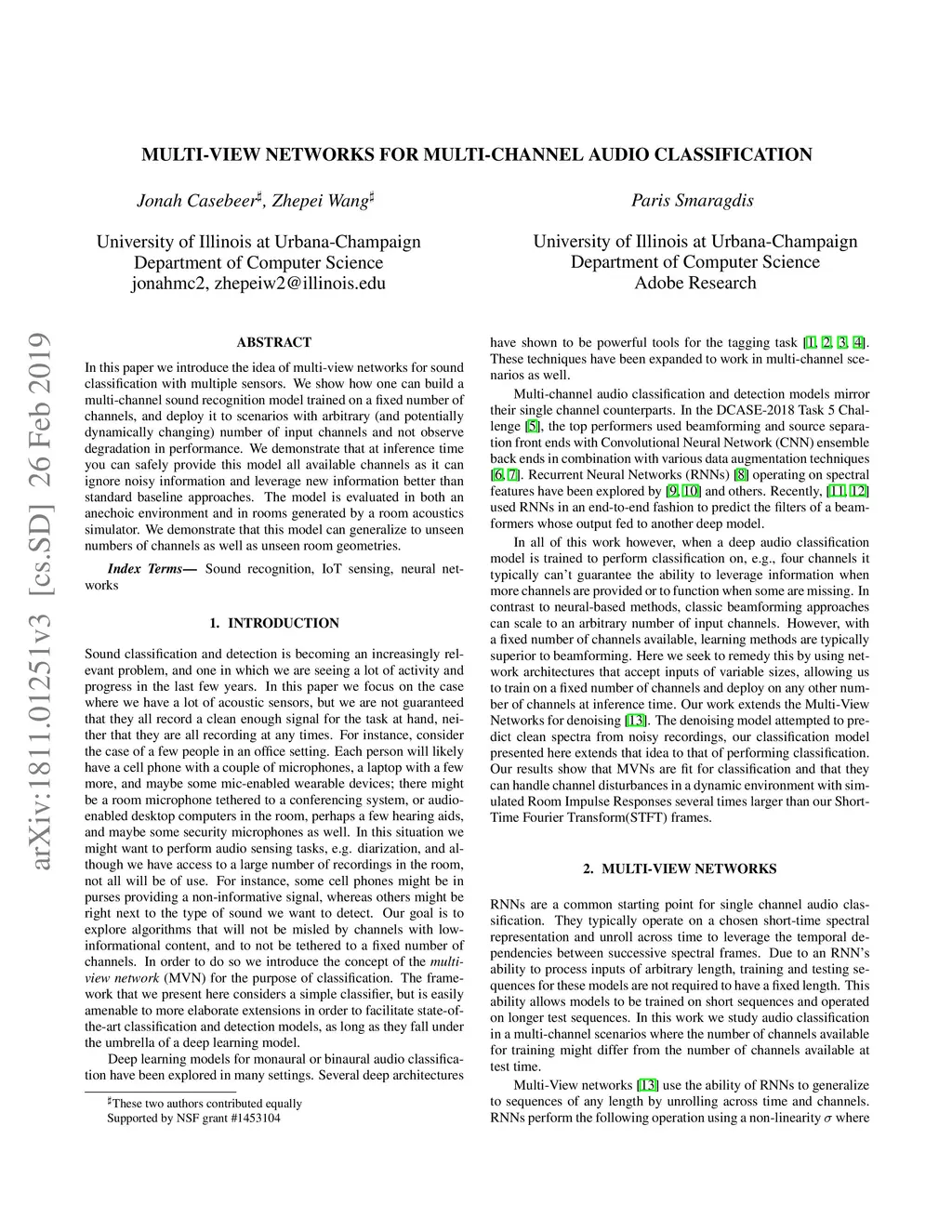 Multi-View Networks For Multi-Channel Audio Classification
