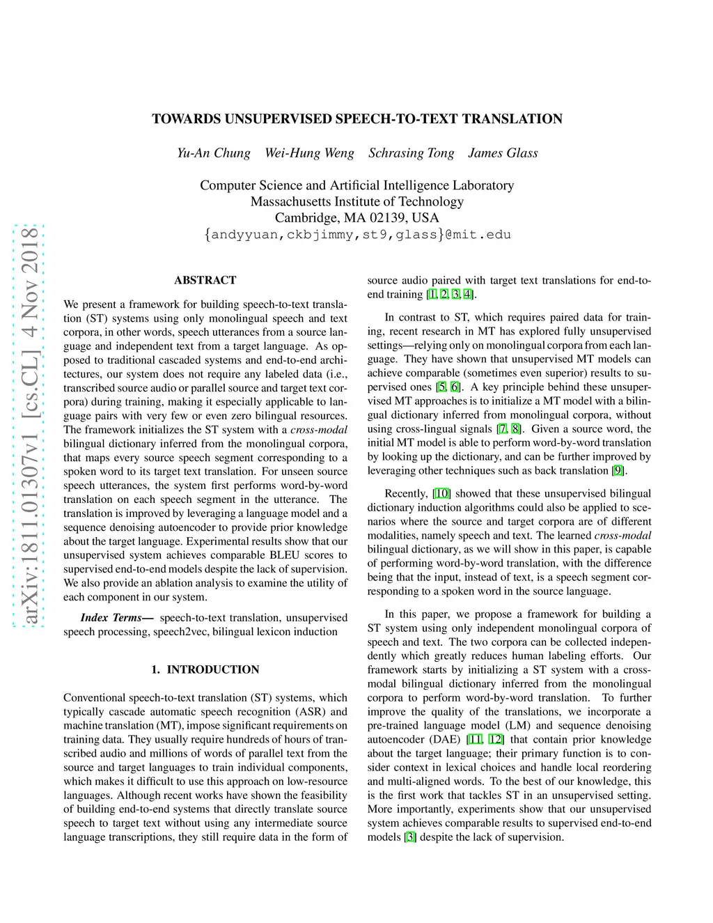 Towards Unsupervised Speech-to-Text Translation