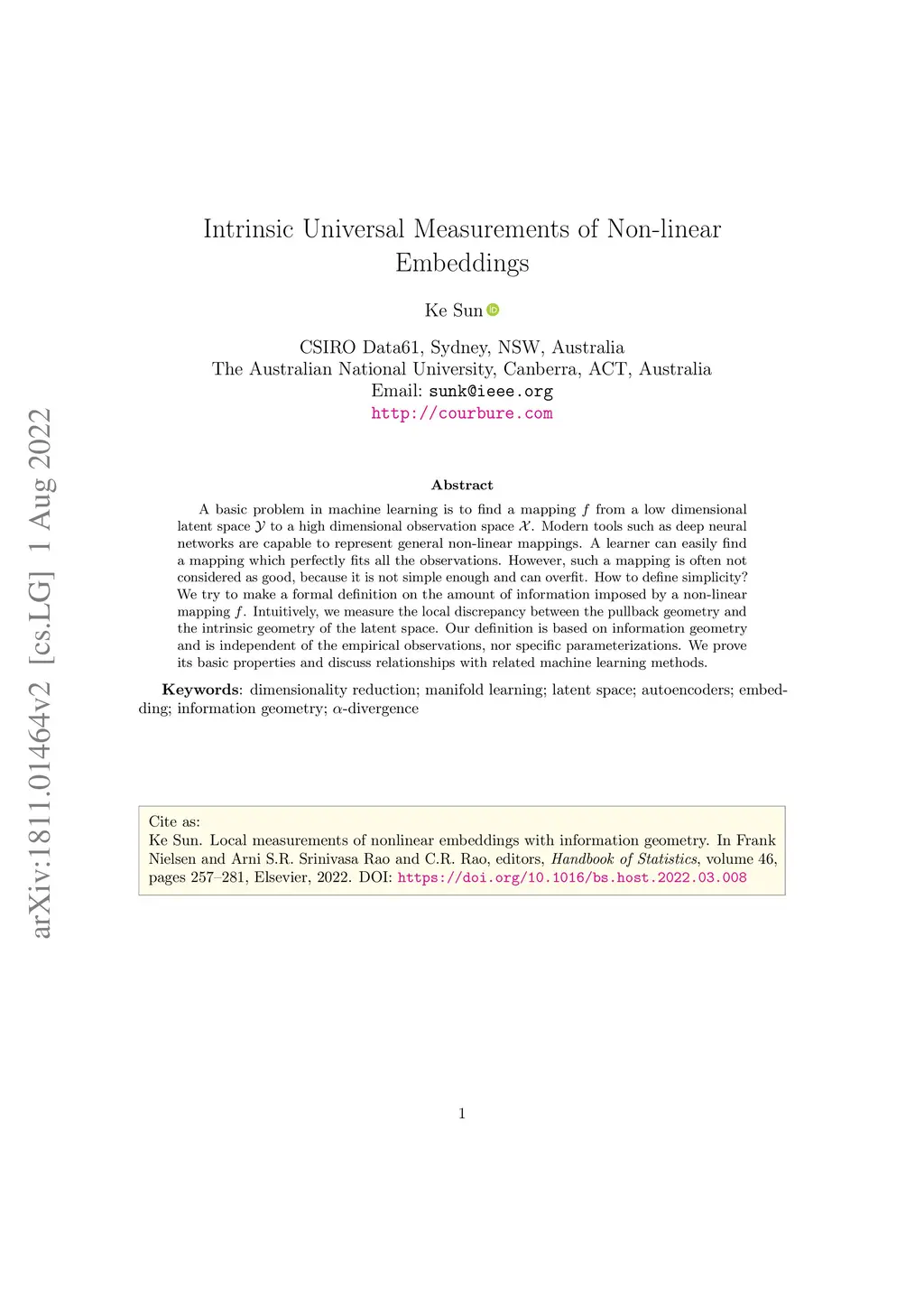 Intrinsic Universal Measurements of Non-linear Embeddings