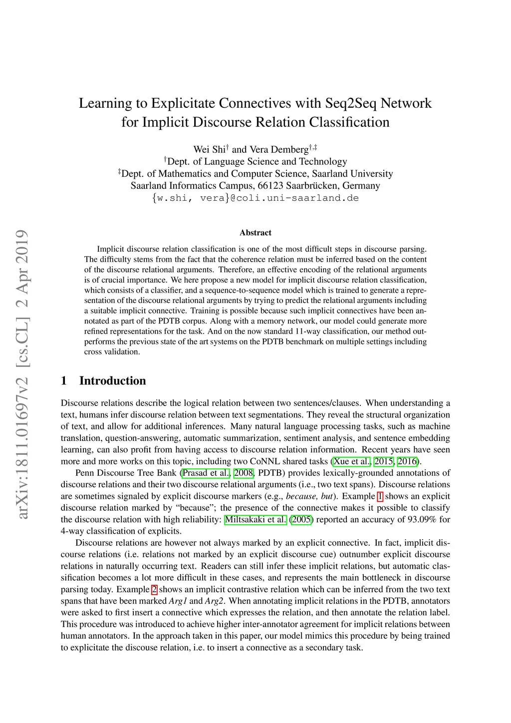 Discourse Relation Classification