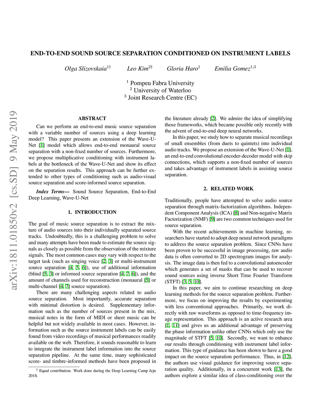 End-to-End Sound Source Separation Conditioned On Instrument Labels