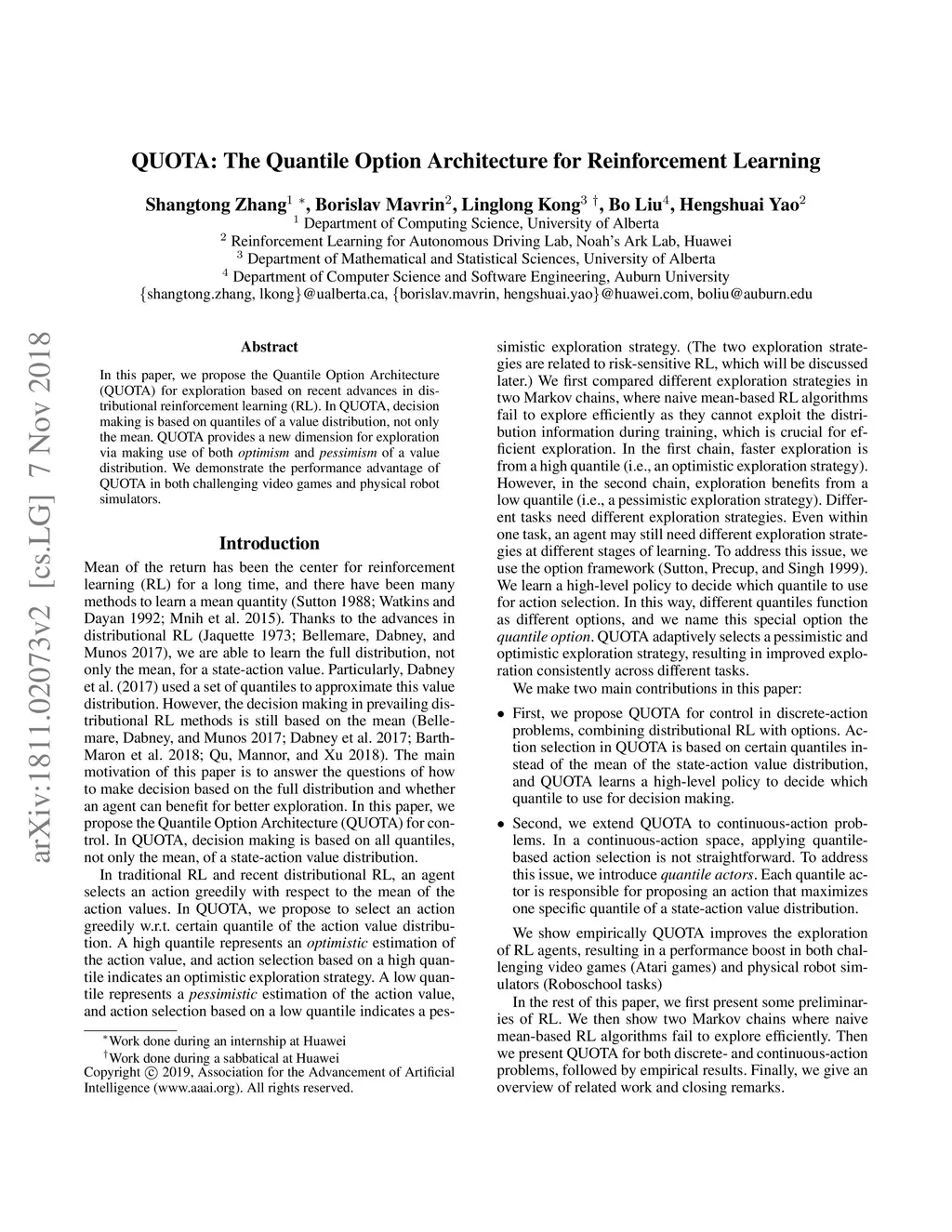 QUOTA: The Quantile Option Architecture for Reinforcement Learning