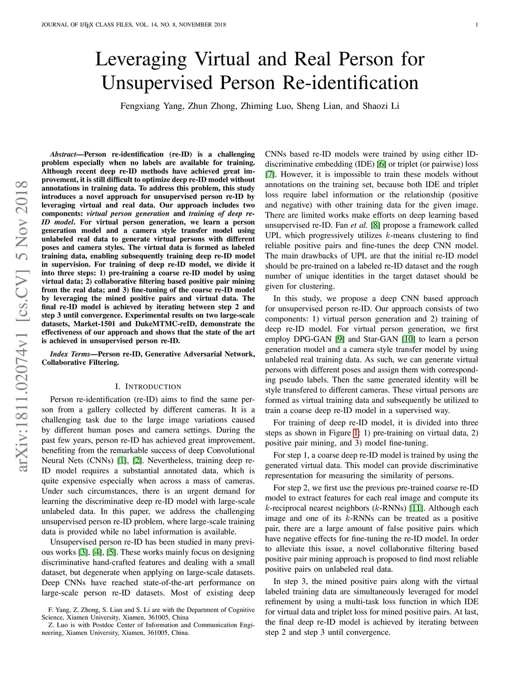 Person re-identification (re-ID) is a challenging problem especially when no labels are available for training. Although recent deep re-ID methods have achieved great improvement, it is still difficult to optimize deep re-ID model without annotations in training data. To address this problem, this study introduces a novel approach for unsupervised person re-ID by leveraging virtual and real data. Our approach includes two components: virtual person generation and training of deep re-ID model. For virtual person generation, we learn a person generation model and a camera style transfer model using unlabeled real data to generate virtual persons with different poses and camera styles. The virtual data is formed as labeled training data, enabling subsequently training deep re-ID model in supervision. For training of deep re-ID model, we divide it into three steps: 1) pre-training a coarse re-ID model by using virtual data; 2) collaborative filtering based positive pair mining from the real data; and 3) fine-tuning of the coarse re-ID model by leveraging the mined positive pairs and virtual data. The final re-ID model is achieved by iterating between step 2 and step 3 until convergence. Experimental results on two large-scale datasets, Market-1501 and DukeMTMC-reID, demonstrate the effectiveness of our approach and shows that the state of the art is achieved in unsupervised person re-ID.