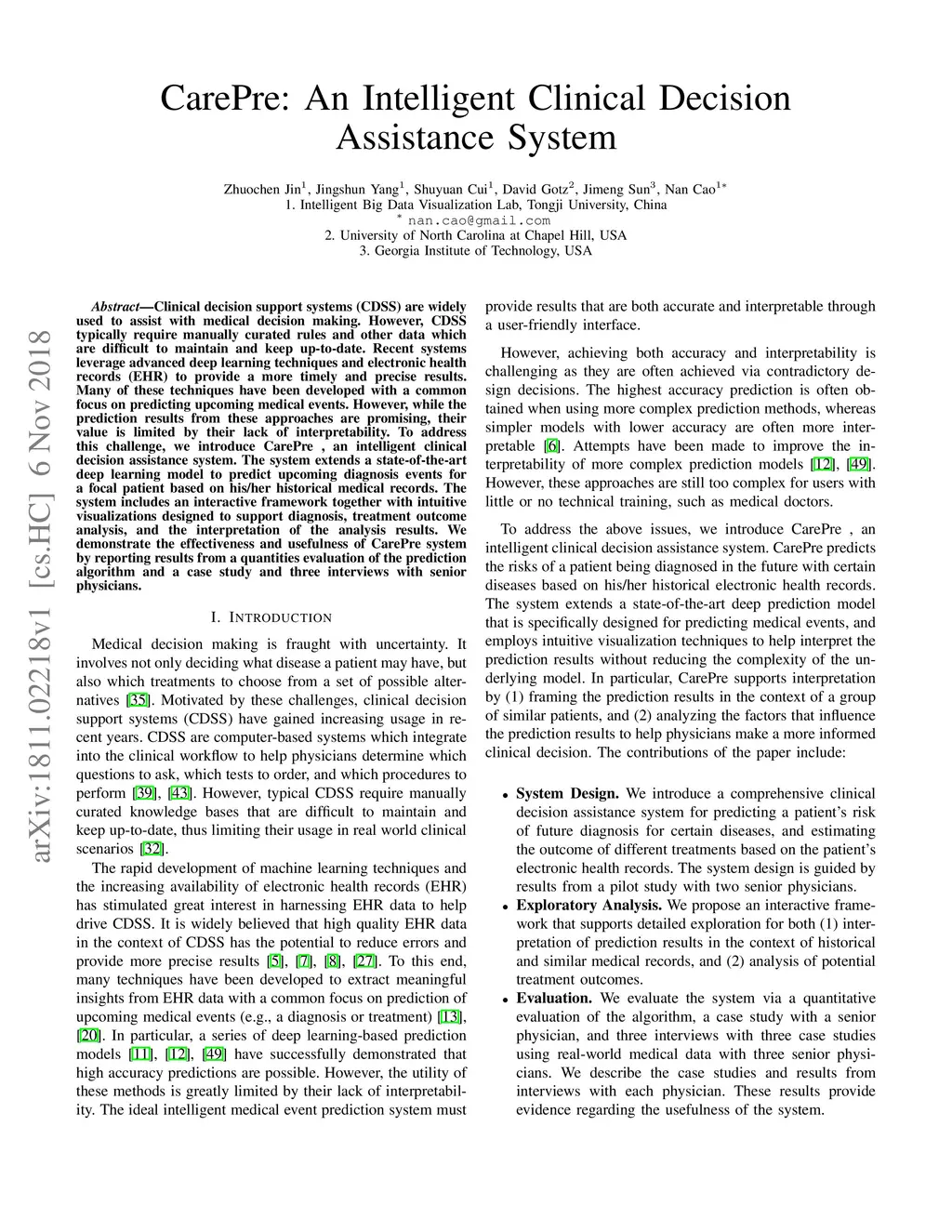CarePre: An Intelligent Clinical Decision Assistance System