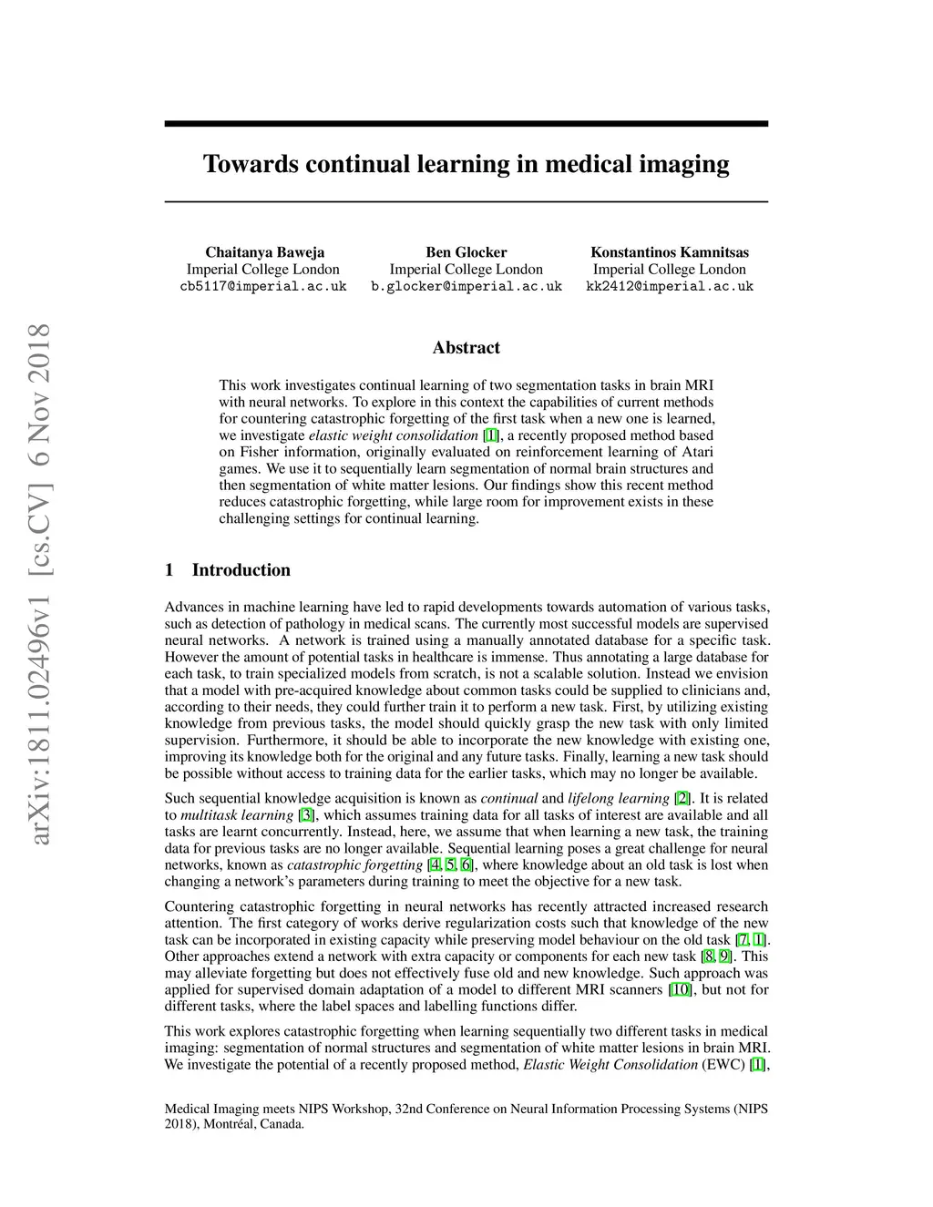Towards continual learning in medical imaging