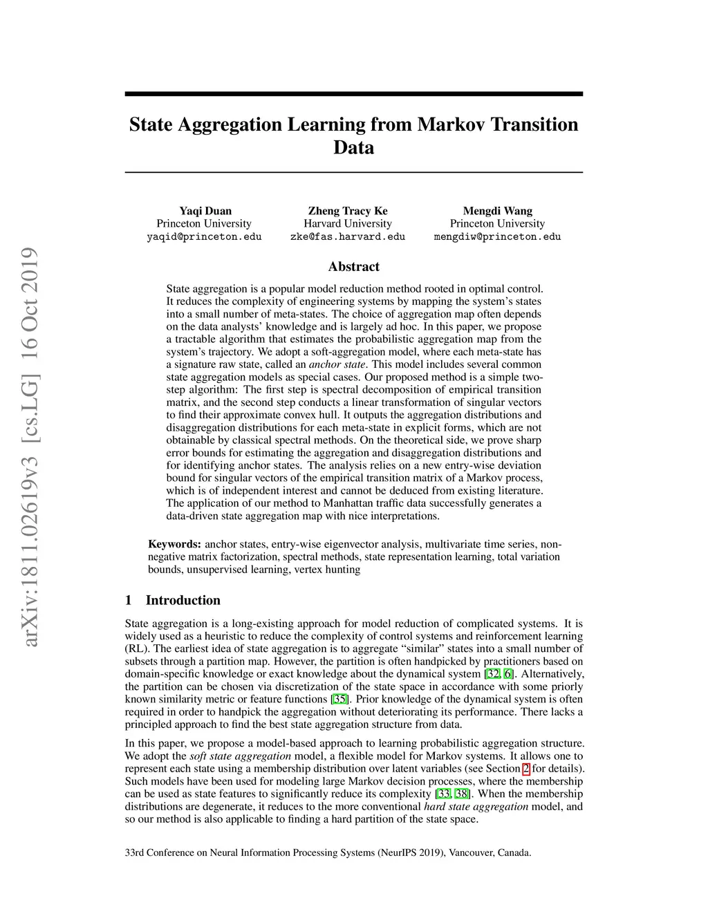 State Aggregation Learning from Markov Transition Data