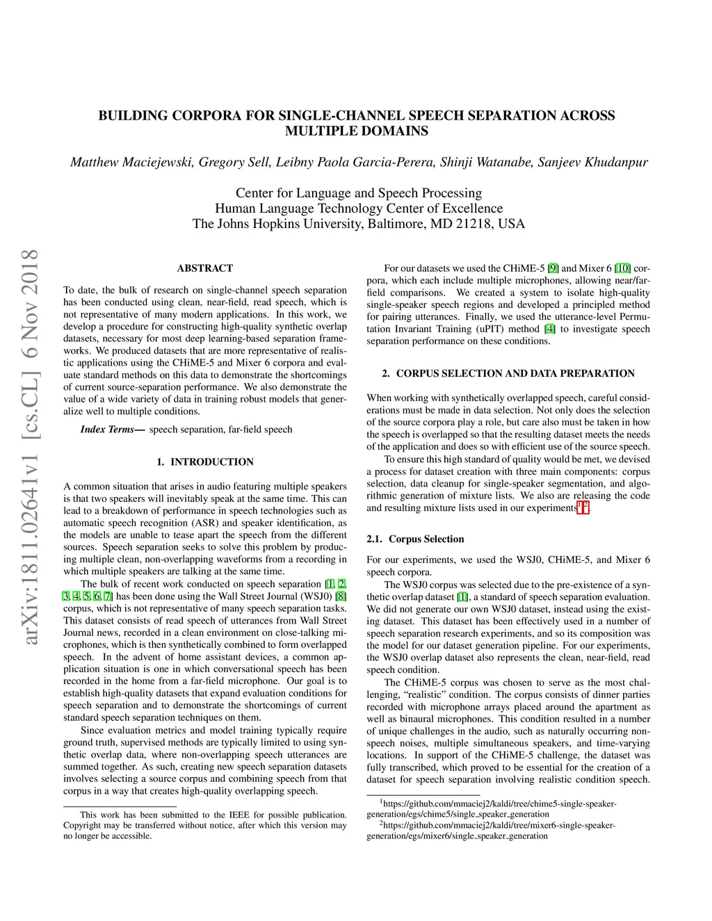 Building Corpora for Single-Channel Speech Separation Across Multiple