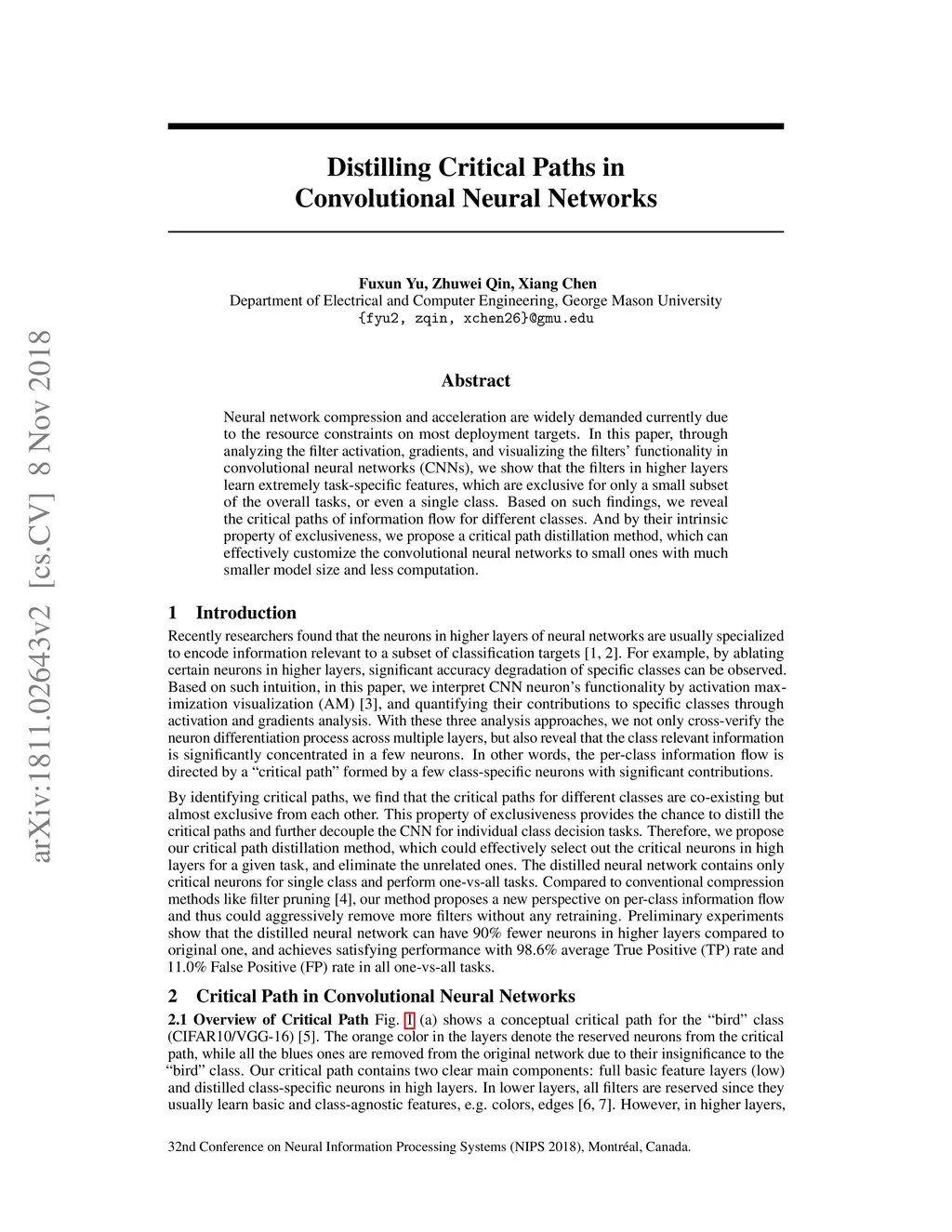 Neural network compression and acceleration are widely demanded currently due to the resource constraints on most deployment targets. In this paper, through analyzing the filter activation, gradients, and visualizing the filters' functionality in convolutional neural networks, we show that the filters in higher layers learn extremely task-specific features, which are exclusive for only a small subset of the overall tasks, or even a single class. Based on such findings, we reveal the critical paths of information flow for different classes. And by their intrinsic property of exclusiveness, we propose a critical path distillation method, which can effectively customize the convolutional neural networks to small ones with much smaller model size and less computation.