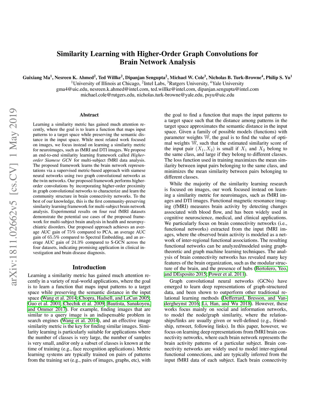 Similarity Learning with Higher-Order Graph Convolutions for Brain