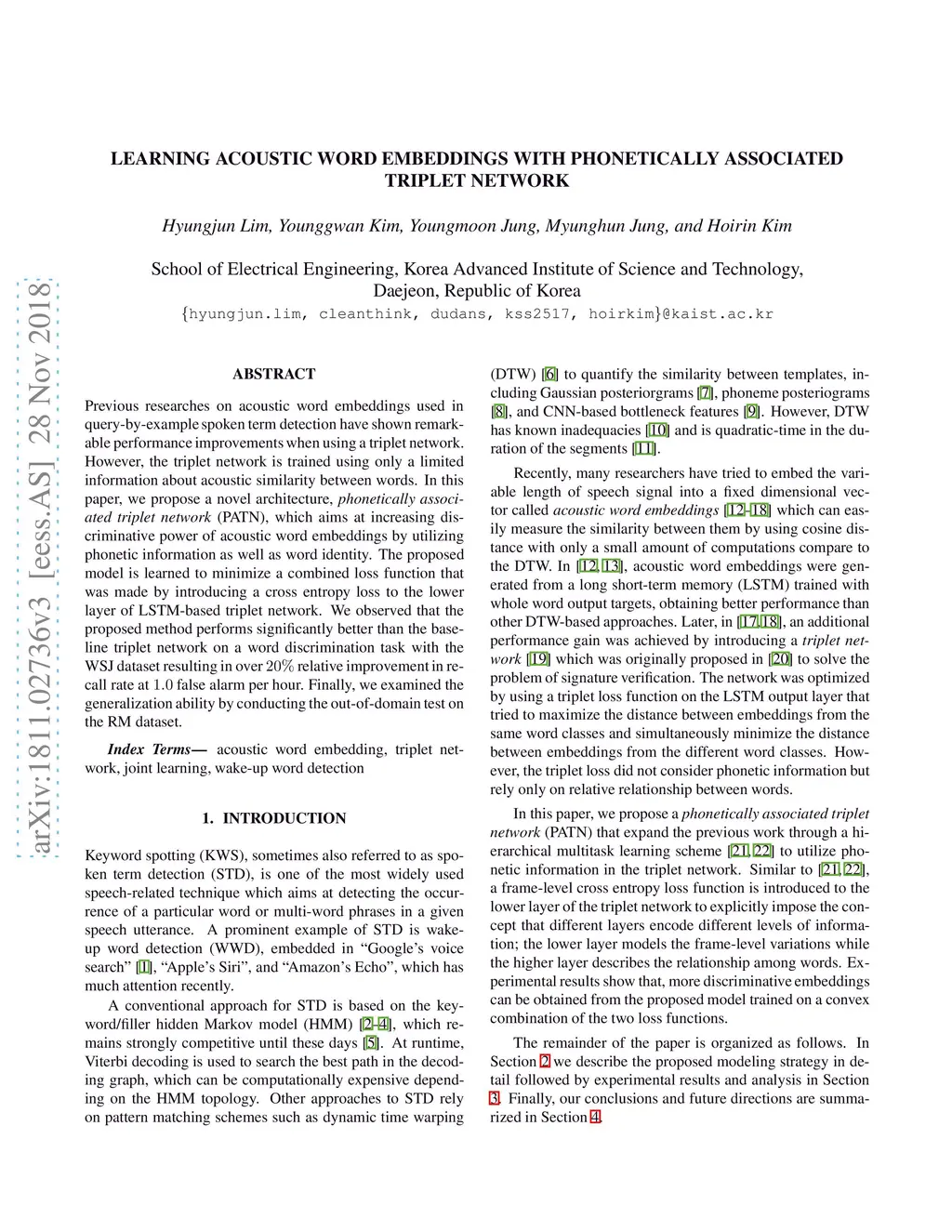 Learning acoustic word embeddings with phonetically associated triplet