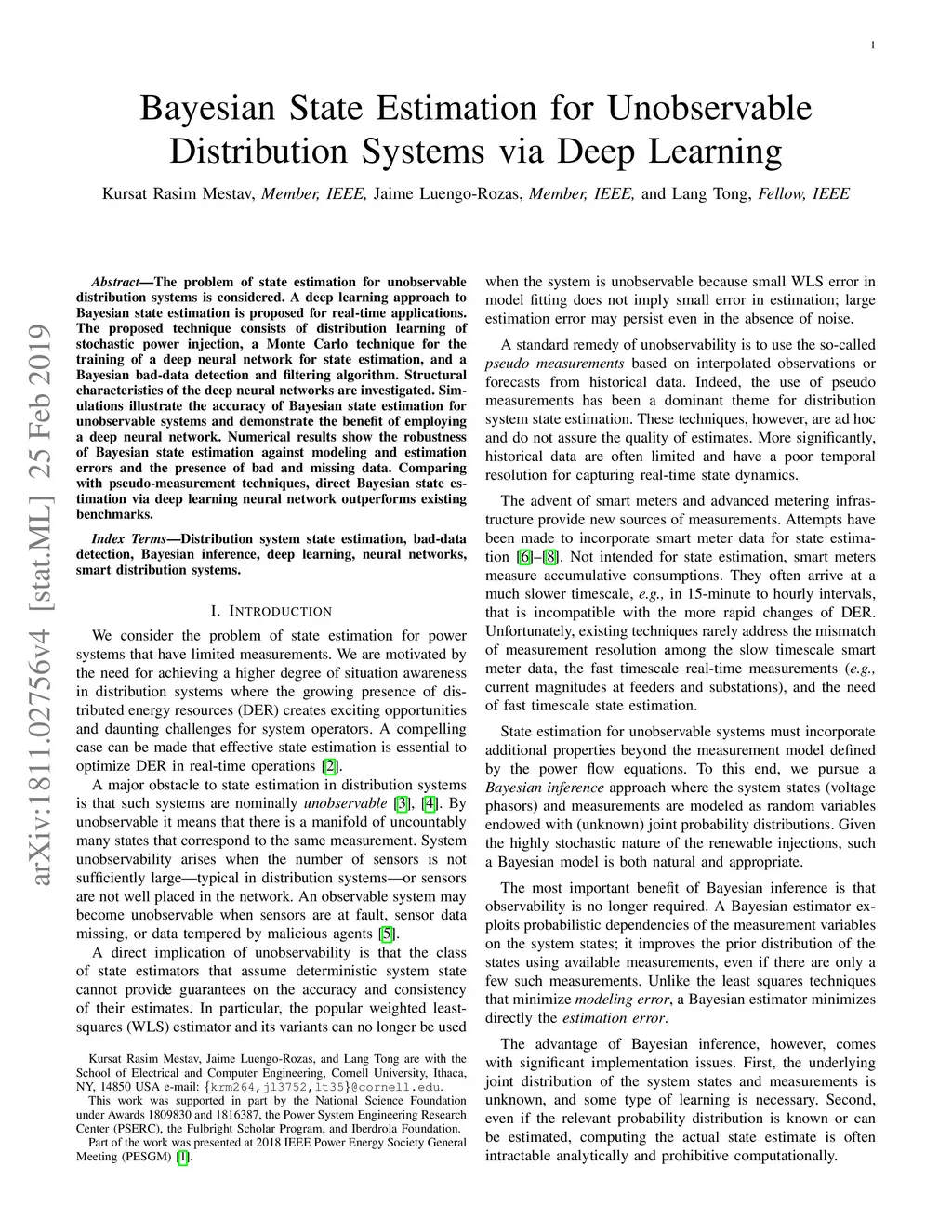 Bayesian State Estimation for Unobservable Distribution Systems via Deep