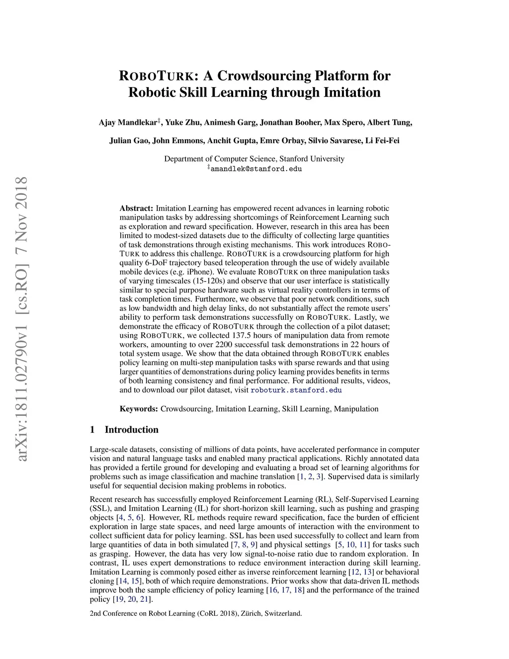 RoboTurk: A Crowdsourcing Platform for Robotic Skill Learning through
